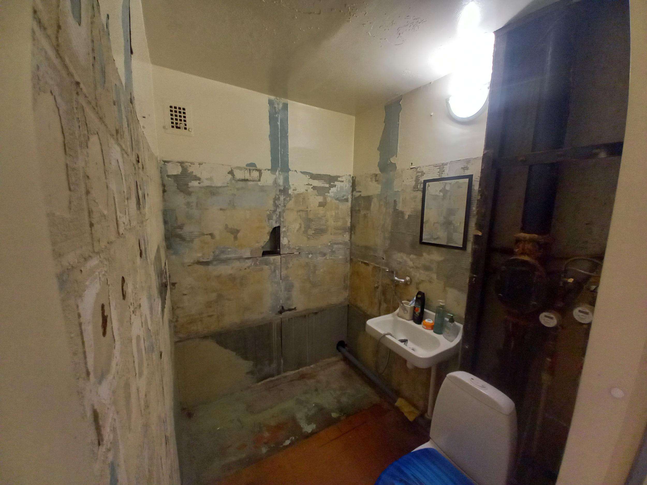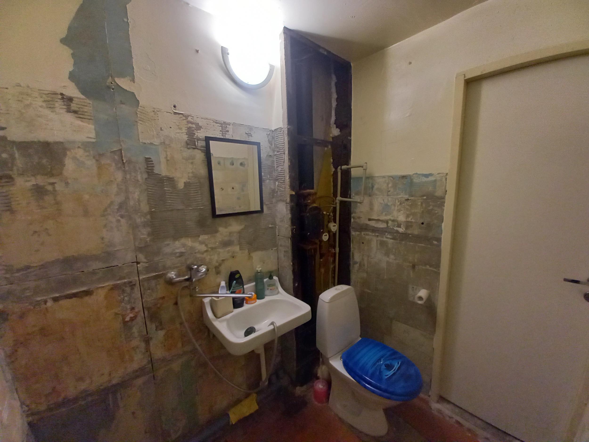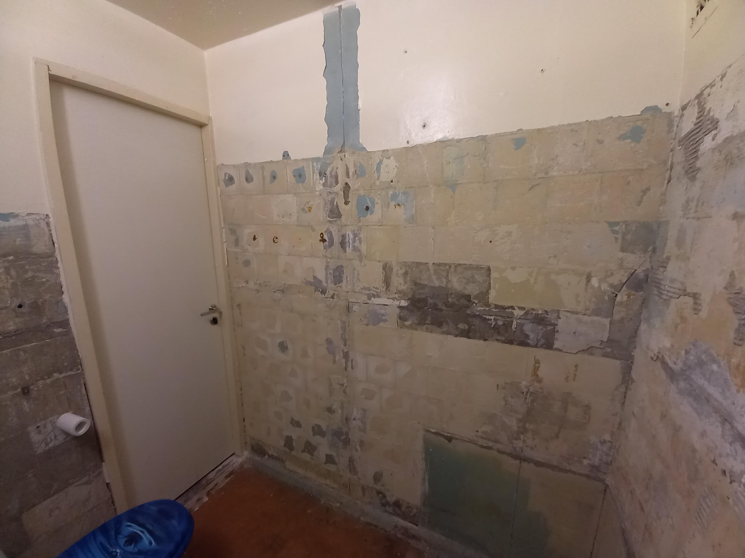 Vannitoa seinast eemaldada vanad ehitusplaadid (tõenäoliselt sisaldavad asbesti). Plaadid eemaldada kõikidest seinadest. Laest pole vaja plaate eemaldada. Tegija hoolitseb plaatide eemaldamise ja utiliseerimise eest. Ruum tuleb pärast lammutust koristada jäätmetest ja võimalik asbestitolm kokku koguda.