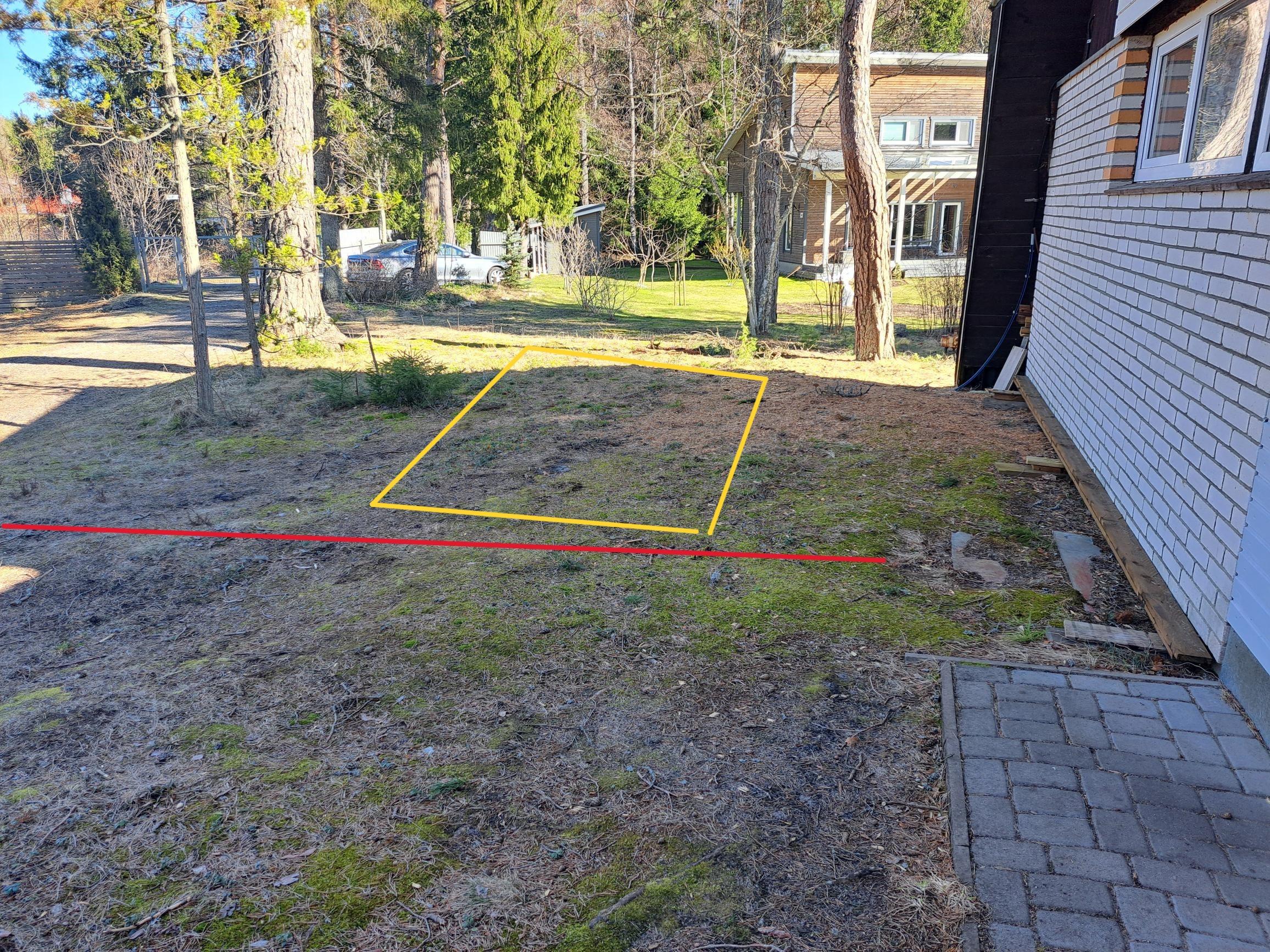 Teisel pildil parkimiskoha rajamiskoht. Suurus ca 5x7m.Vaja täita pinnasega, Mahuti väljakeva saab siia paigaldada.Pind katta freesasfaldiga.