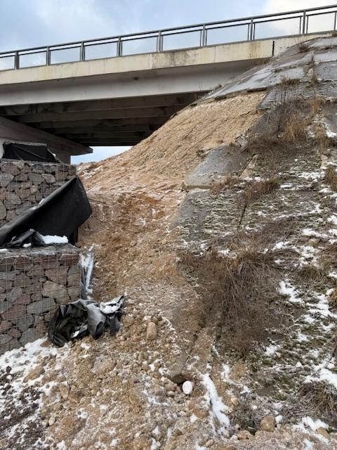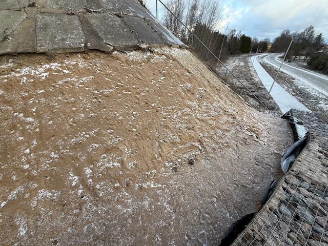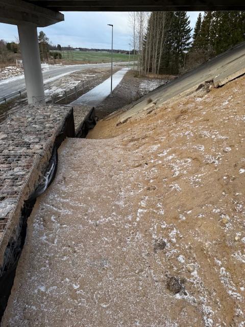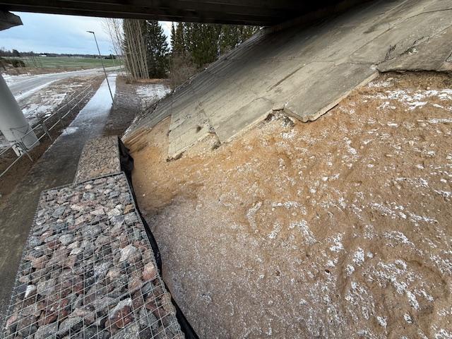 Töö sisuks on viadukti all olevate gabiooni korvide taguse silla koonuse kindlustamine betooniga ehk valada lõikel näidatud betoonkindlustus, et vesi saaks ära voolata. Monoliit raudbetoon materjal (sillakoonuse kindlustuse taastamine) h=7cm ca 5,00m3. Töö võib teostada ka fiiberbetooniga. Betoon valada tasa olemasolevate betoonplaatidega ja gabioon korvide juurest teha 10cm ülespööre, et vesi saaks ära voolata.