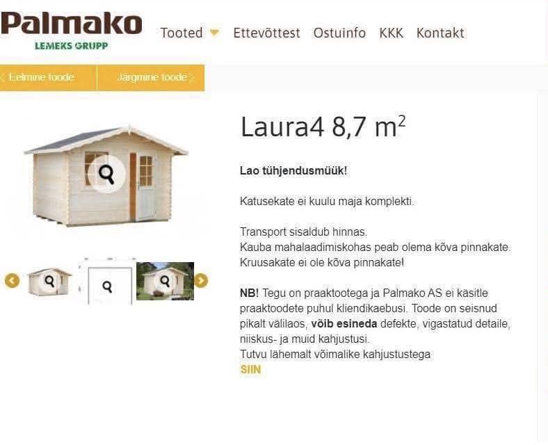 Kuuri paigaldus: olemas Palmako tootjajuhend. Kuuri pindala 8,7 m2 (lisainfo lisatud hankele).