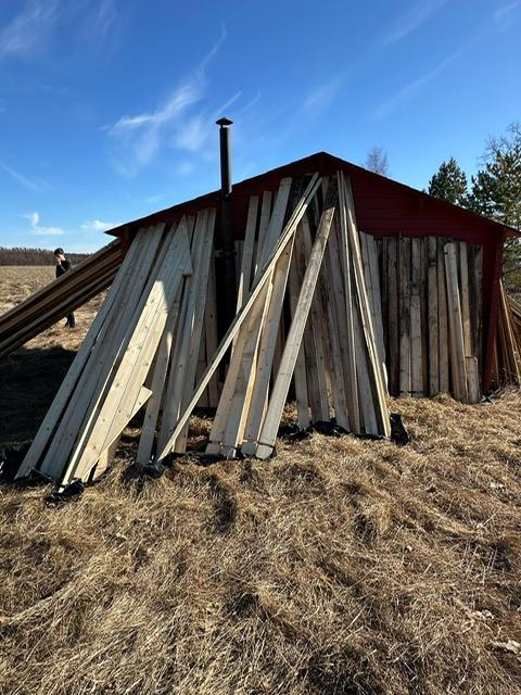 Kuuri pakk oli jäänud välja seisma ning osal materjalil on tekkinud veekahjustus ning materjali tuleks paigata/ tugevdada/ välja vahetada (lisas pildid, hetkel materjal on kuivamas). Saame Hosbysse toimetada materjali eelnevalt mainitu tegemiseks.