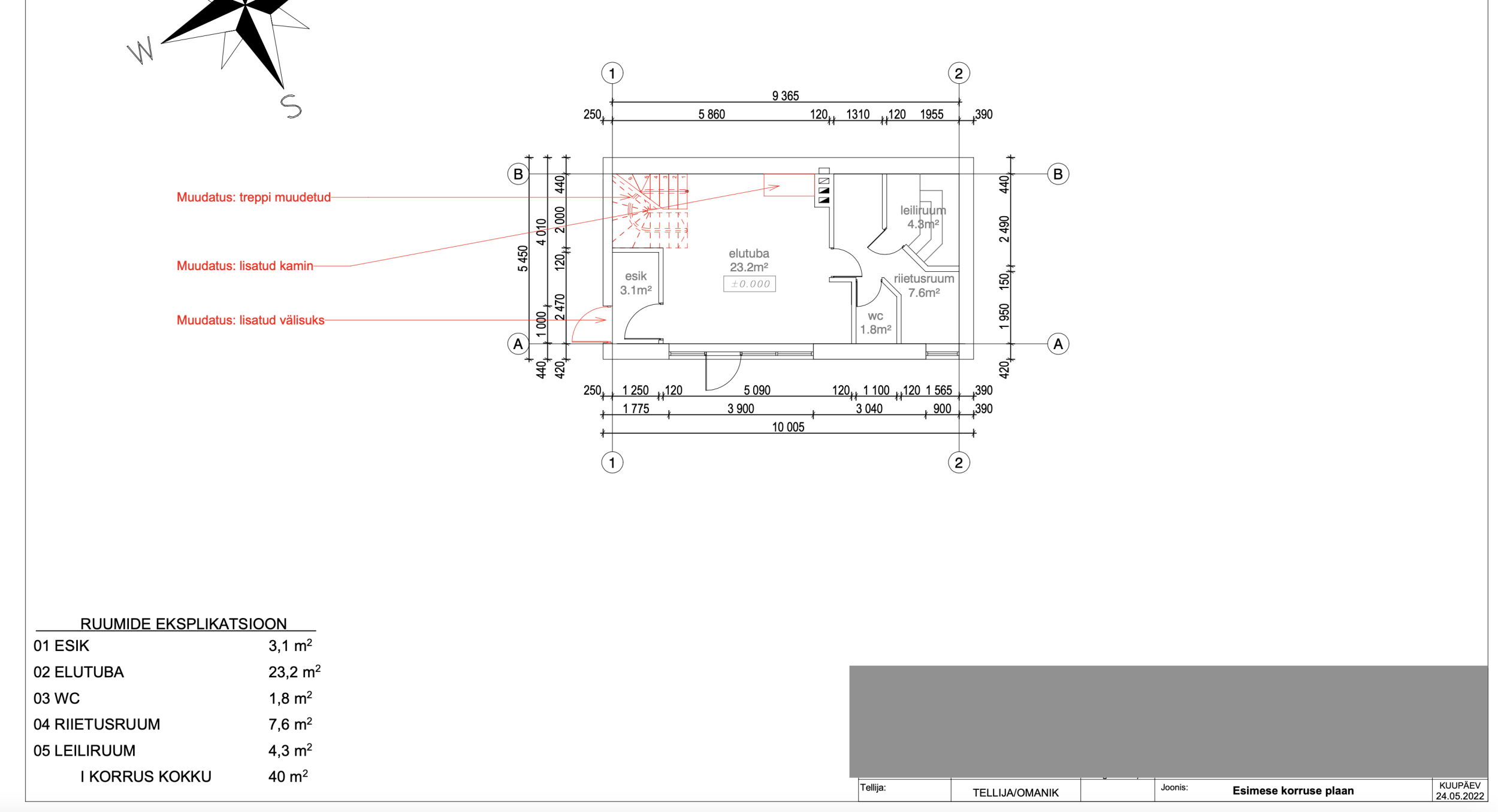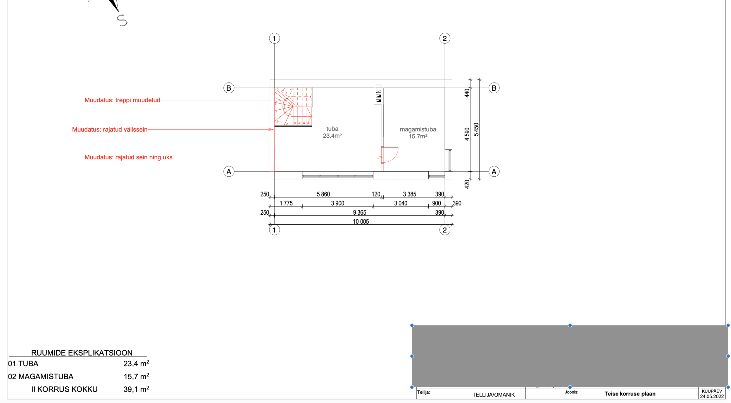 Lisaks vaja koostada teised vajalikult projektid (eelprojekt kindlasti) et saaks linnalt ehitusloa ning mille baasil saaks ehitama hakata.