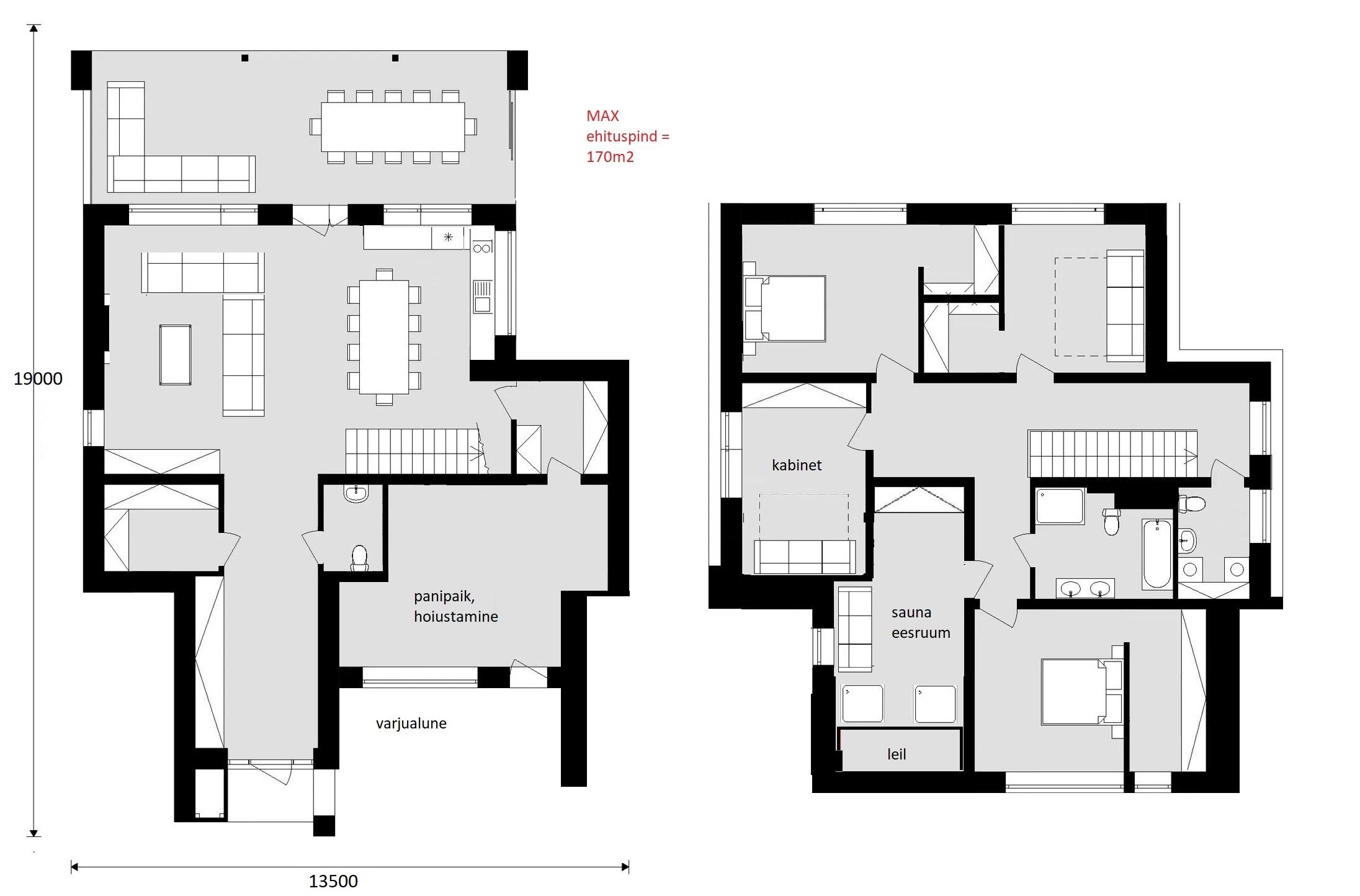 Planeeritava maja suurus: 170m2, kahe korruseline.