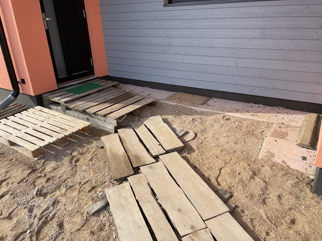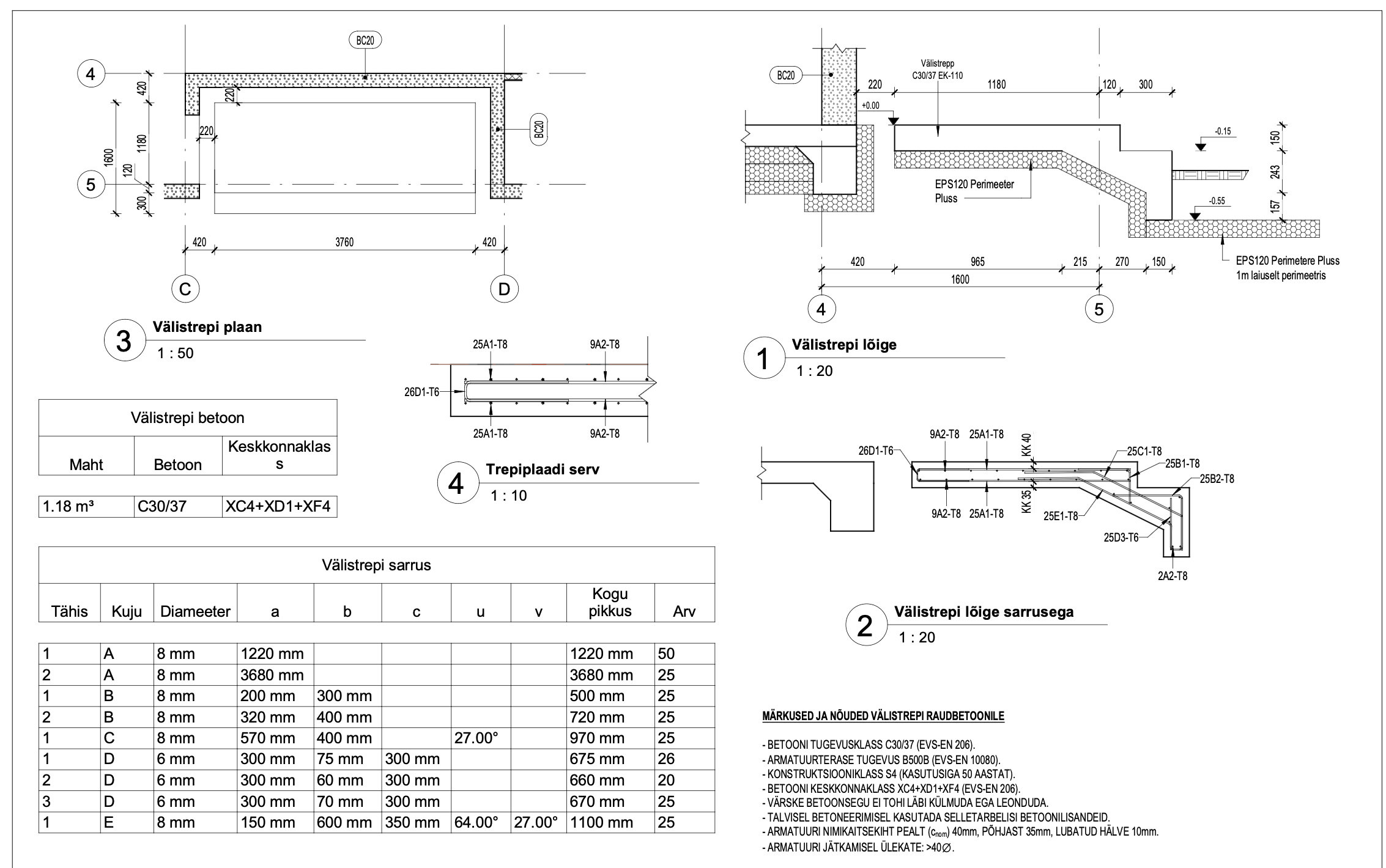 Rajada betoonist välistrepp vastavalt ehituskonstruktsioonidele (vt joonist). Välistrepi alune pinnas (killustik) korrigeerida vastavalt vajadusele. Tööd tuleb teostada puhtalt ilma fassaadi ja välisust kahjustamata.