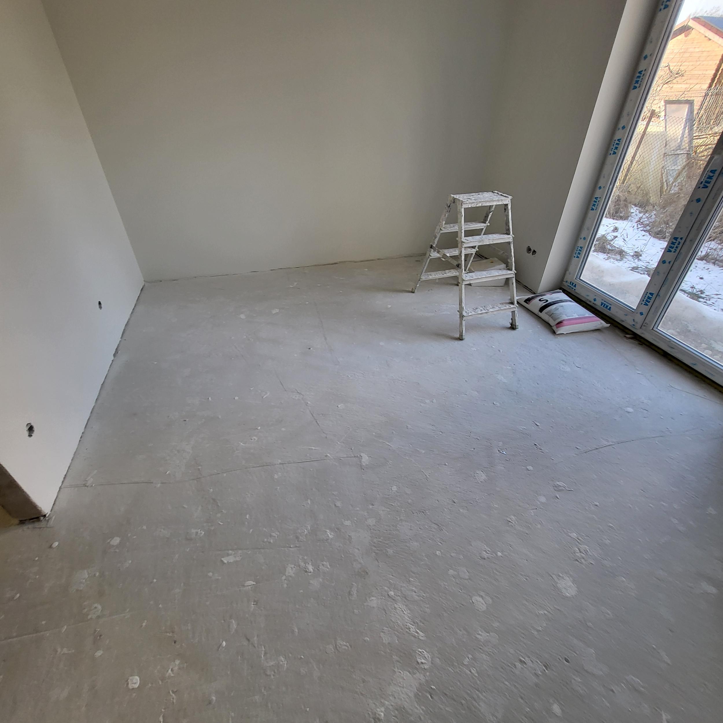 Kaks suumi, mõlemad 12.3 m2, kokku siis 24,6 m2. Ruumid ühesuguse kujuga. Betoonpõrand vajab enne ilmselt lihvimist, pole kõige siledam. Pakkumine põranda lihvimisele, parketi paigaldus, lihvimine ja lakkimine.