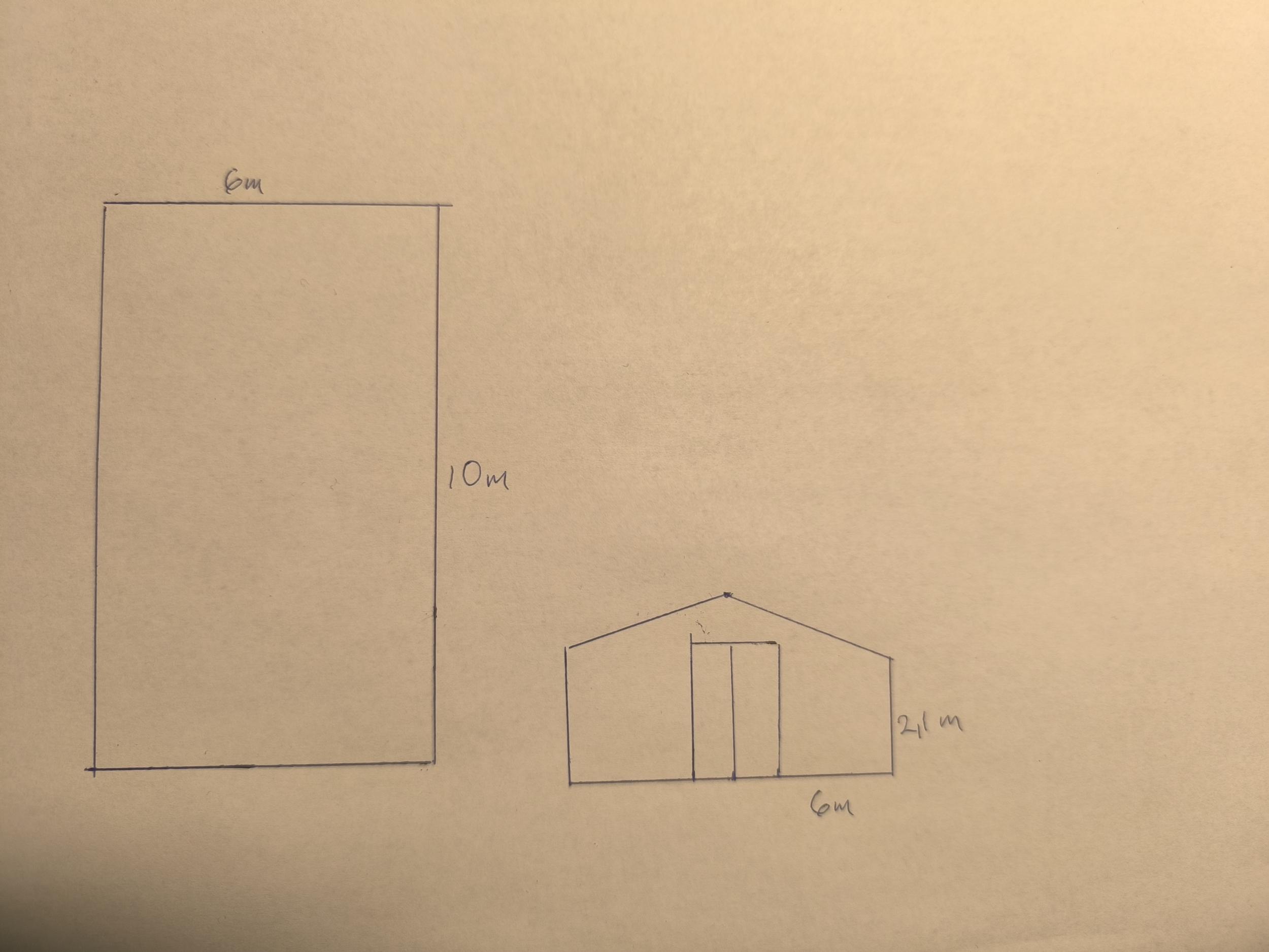 Mõõdud on lisatud manuses. Kasvuhoone kõrgus võib erineda joonisel näidatust. Kasvuhoonel peab olema kaks ust ühes otsas ja kaks õhutusakent.