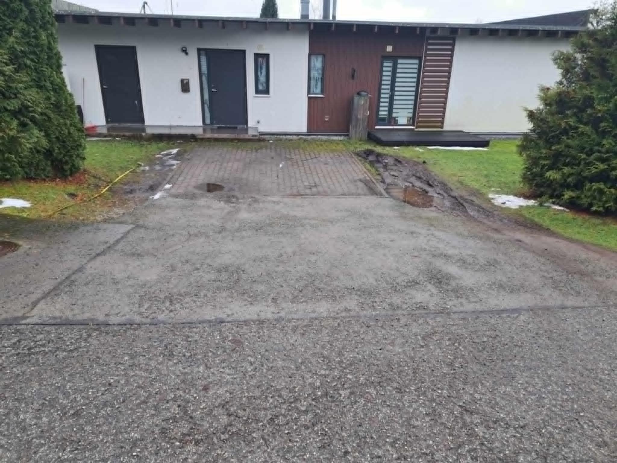 Vaja oleks vana sissesõidutee kivi üles võtta. Hetkel on olemasoleva unikivi platsi laius on 4,05m ja pikkus 5m. Vaja on laiendada mõlemalt poolt ja uus sissesõidu tee laius on 6,5m ning pikkus 7,6m. Kokkuvõtvalt on vaja vana sissesõidu kivi eemaldada ja teha suurem alus ning uus sissesõidu tee ,asfalt kattega, mõõtmetega 6,5m x 7,6m.