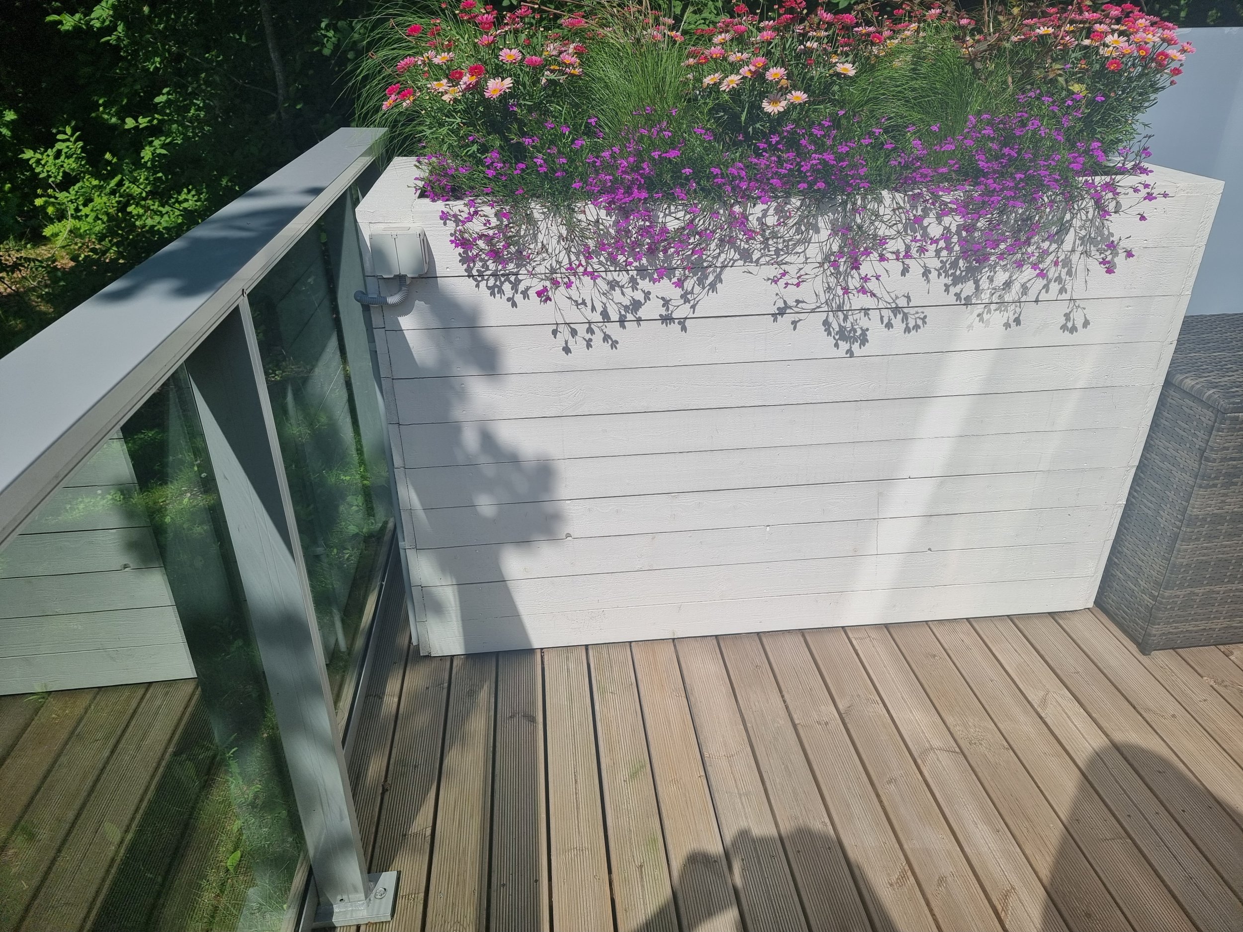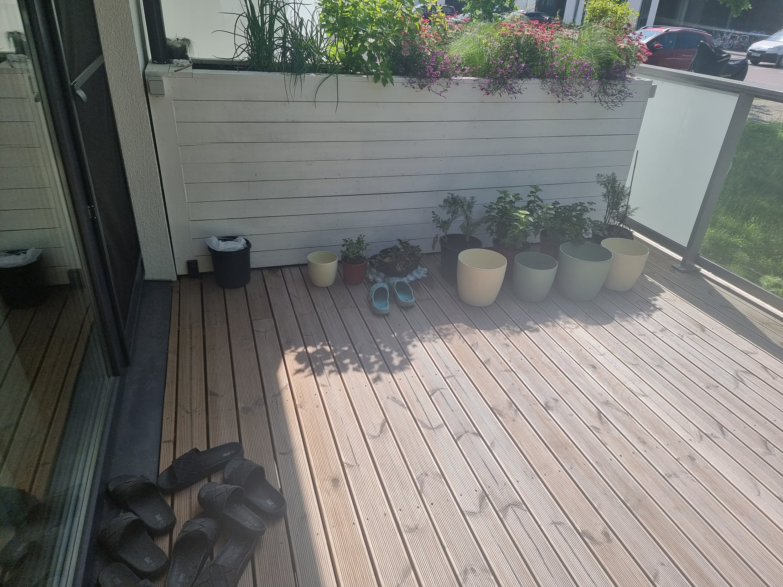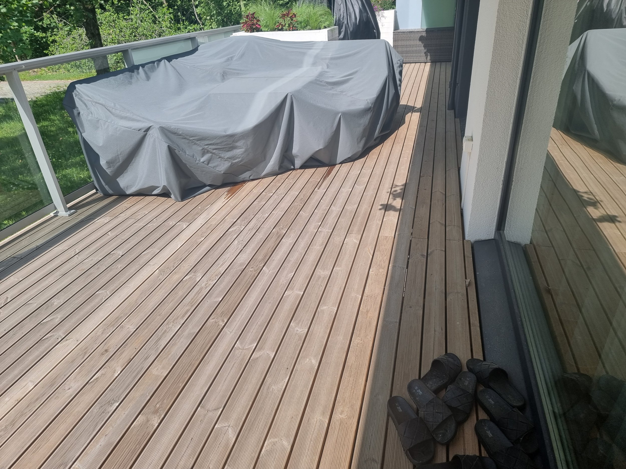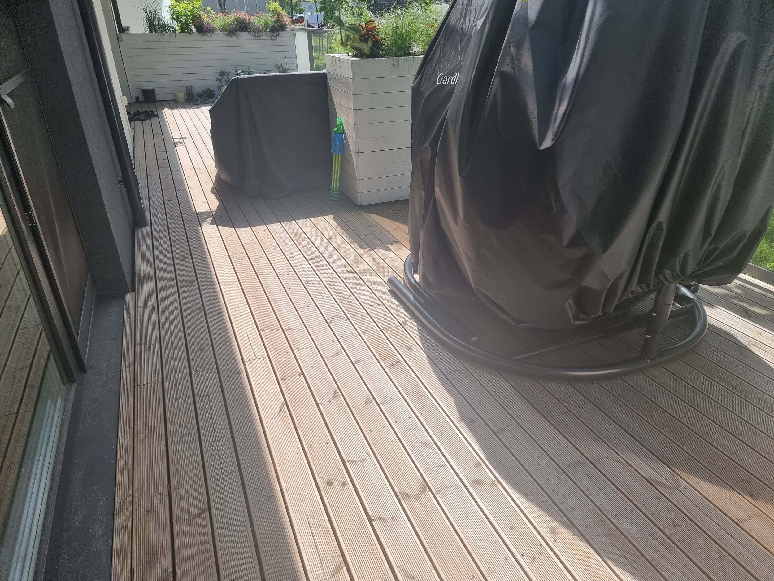 Terrassi hooldus ca 34 m2. Terrassi pesu ja õlitamine. Lillekastitide all on liigvee äravool ning vesi jookeseb terrassile ja ei kuiva, kastide all, hästi ära ning võib hakata sealt terrassi mädandama. Vaja on leida lillekasti liigvee ärajuhtimiseks mingi lahendus, vee terrassi alla juhtimiseks. Kastid on rasked (ca 60 cm mulda ja kergkruusa) ning kastide liigutamiseks võib vajada mulla väljavõtmist ja uuesti täitmist. Kastide küljes on ka elektripistikud.