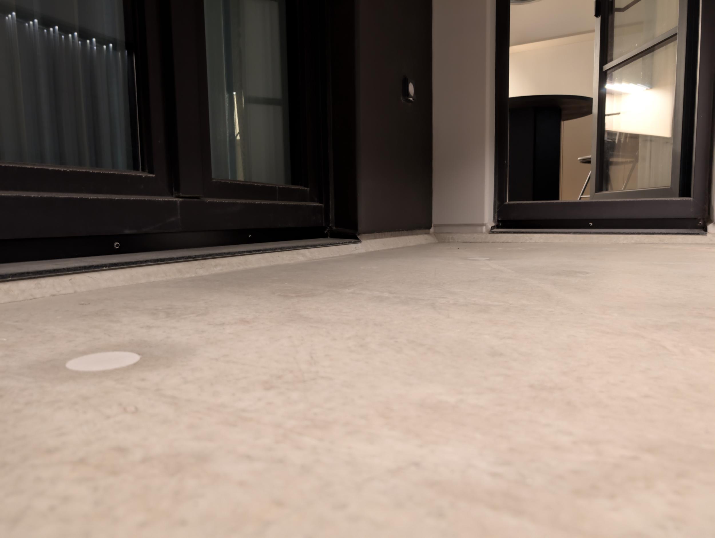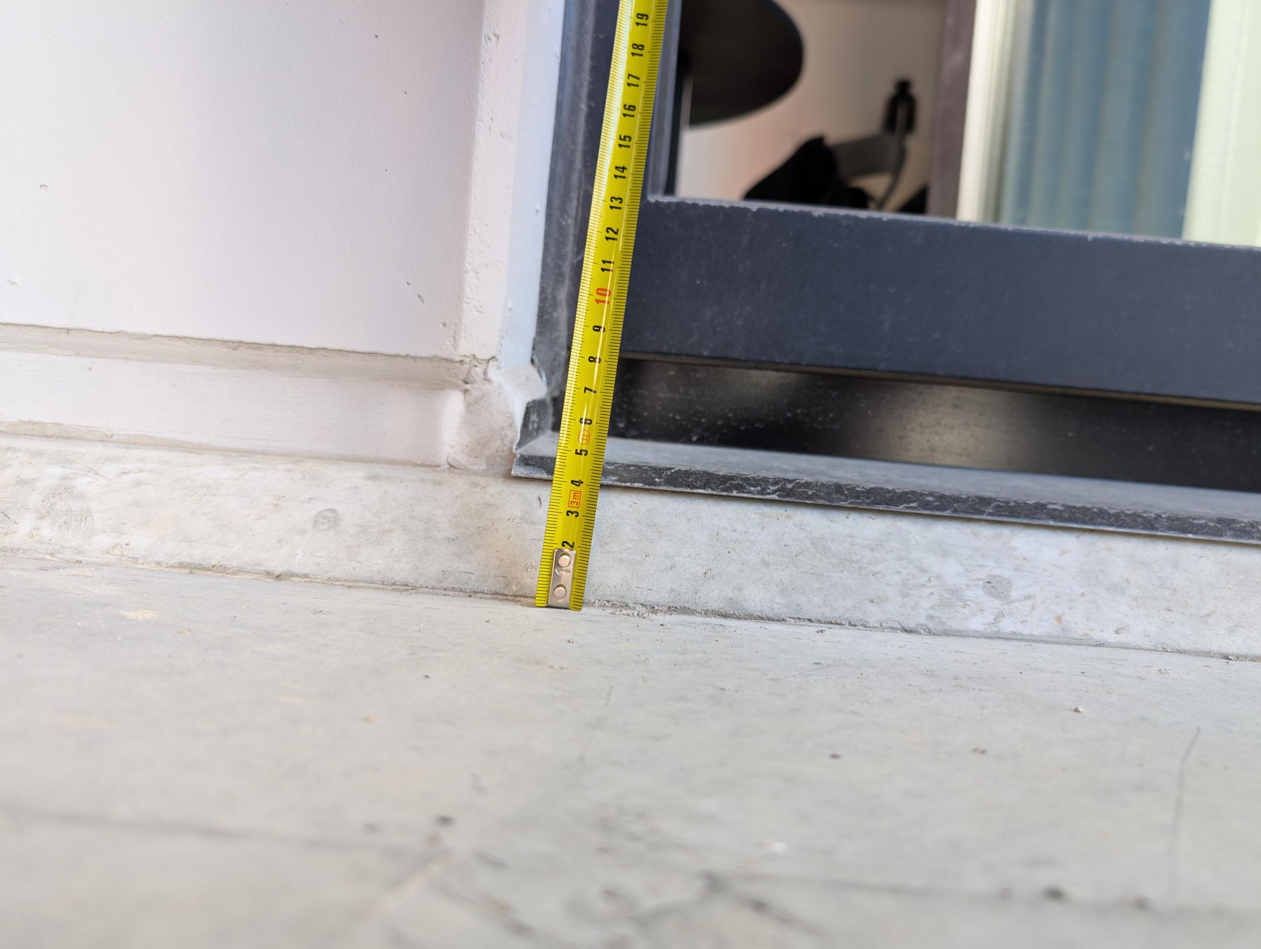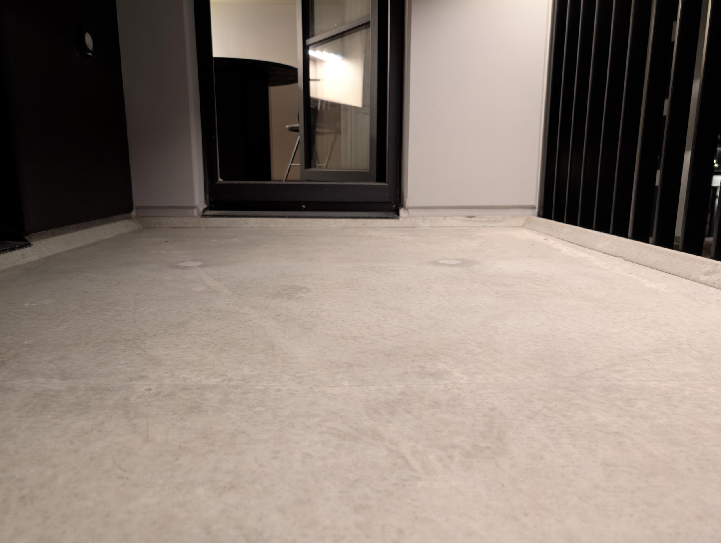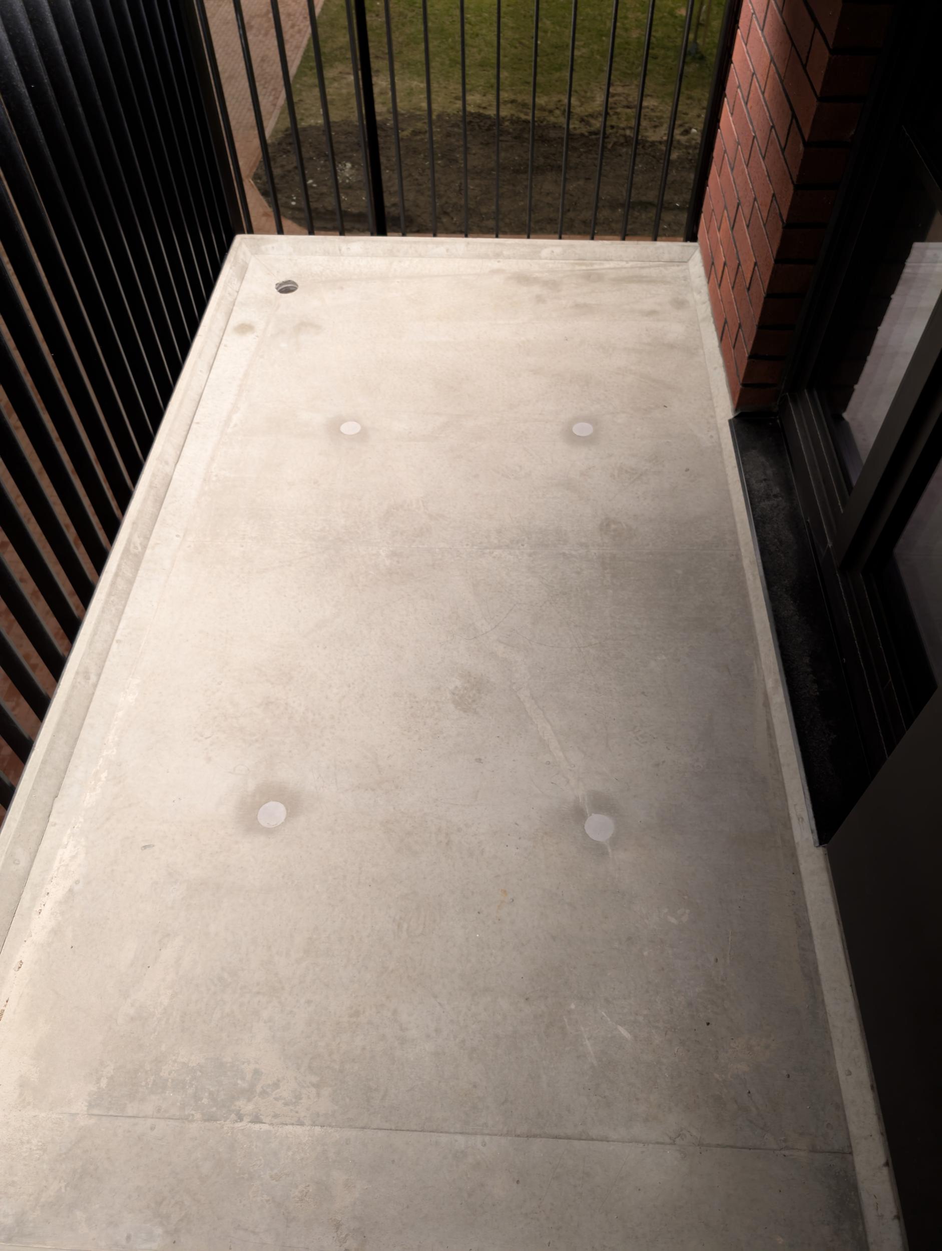 Rõdul on vee äravooluks kalded (pildil) –võib-olla on vaja karkassi, mis tekitaks tasase pinna, ilma vee äravoolu takistamata. Karkass võiks olla võimalikult madal, et laudpõrand kenasti rõdu uste alla ära mahuks.