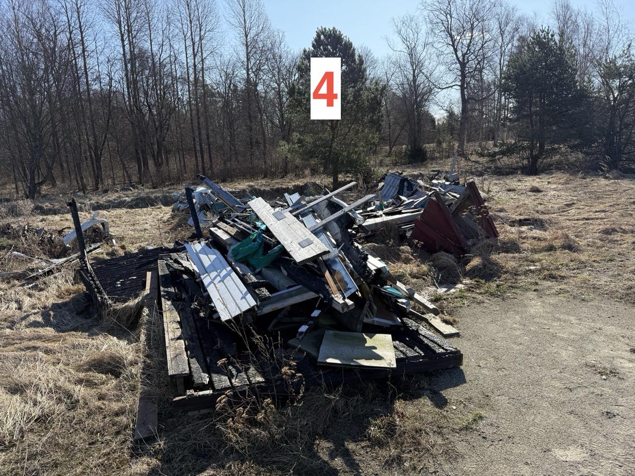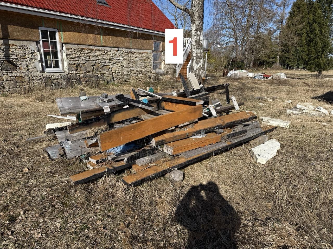 Tööd hõlmavad tulekahjus kahjustada saanud ehitusjäätmete ja vana väikese puithoone jäätmete äravedu ja korrektset utiliseerimist. Jäätmed on valdavalt puitmaterjal. Jäätmeõiend ei ole vajalik, kuid utiliseerimine peaks olema korrektne.