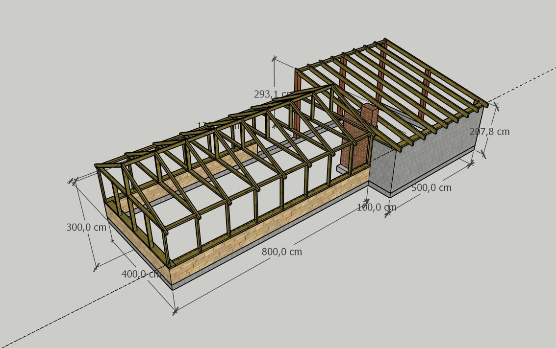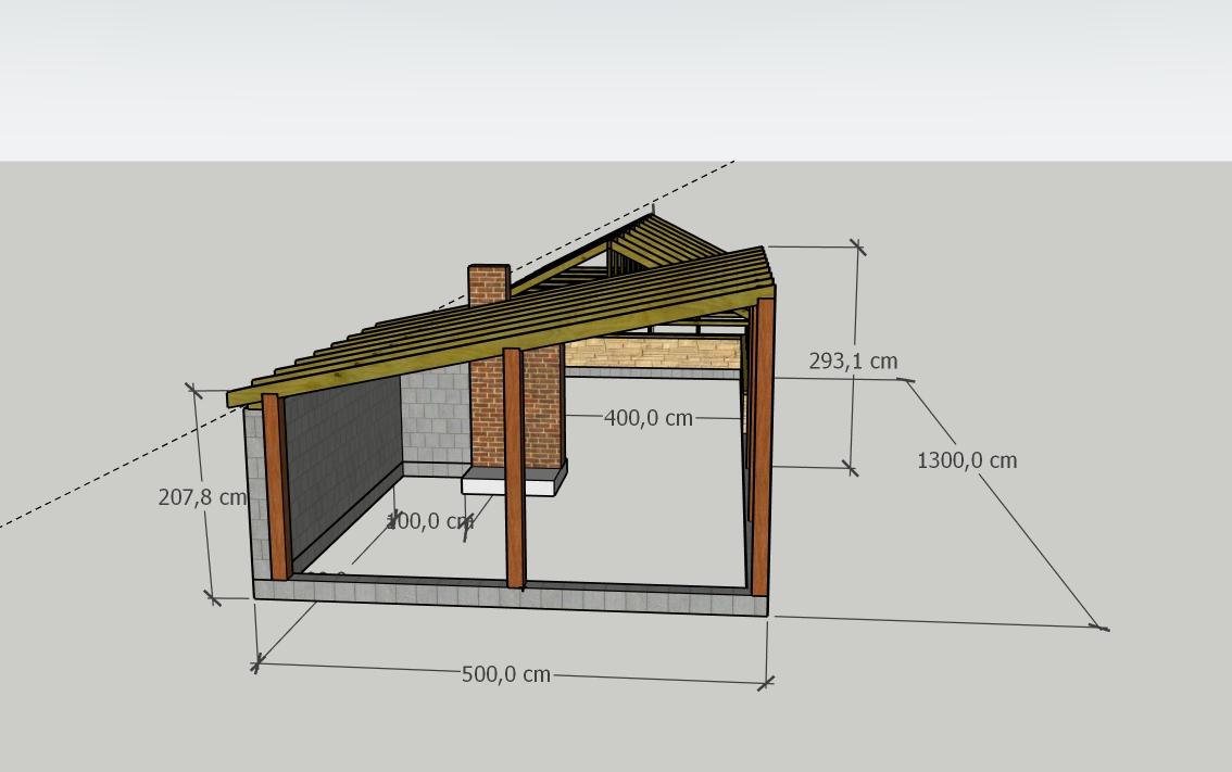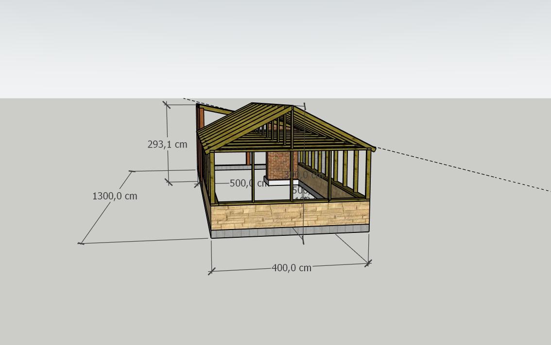 Eeskoda: Lintvundamendil puitkarkassiga hoone osa suurusega 5x5m (25m2). Vari- ehk kuurkatus on profiilplekist. Seinamaterjalideks on kergplokk, välisvoodrilauad. Lükanduksed ja aknad on klaaspakett.