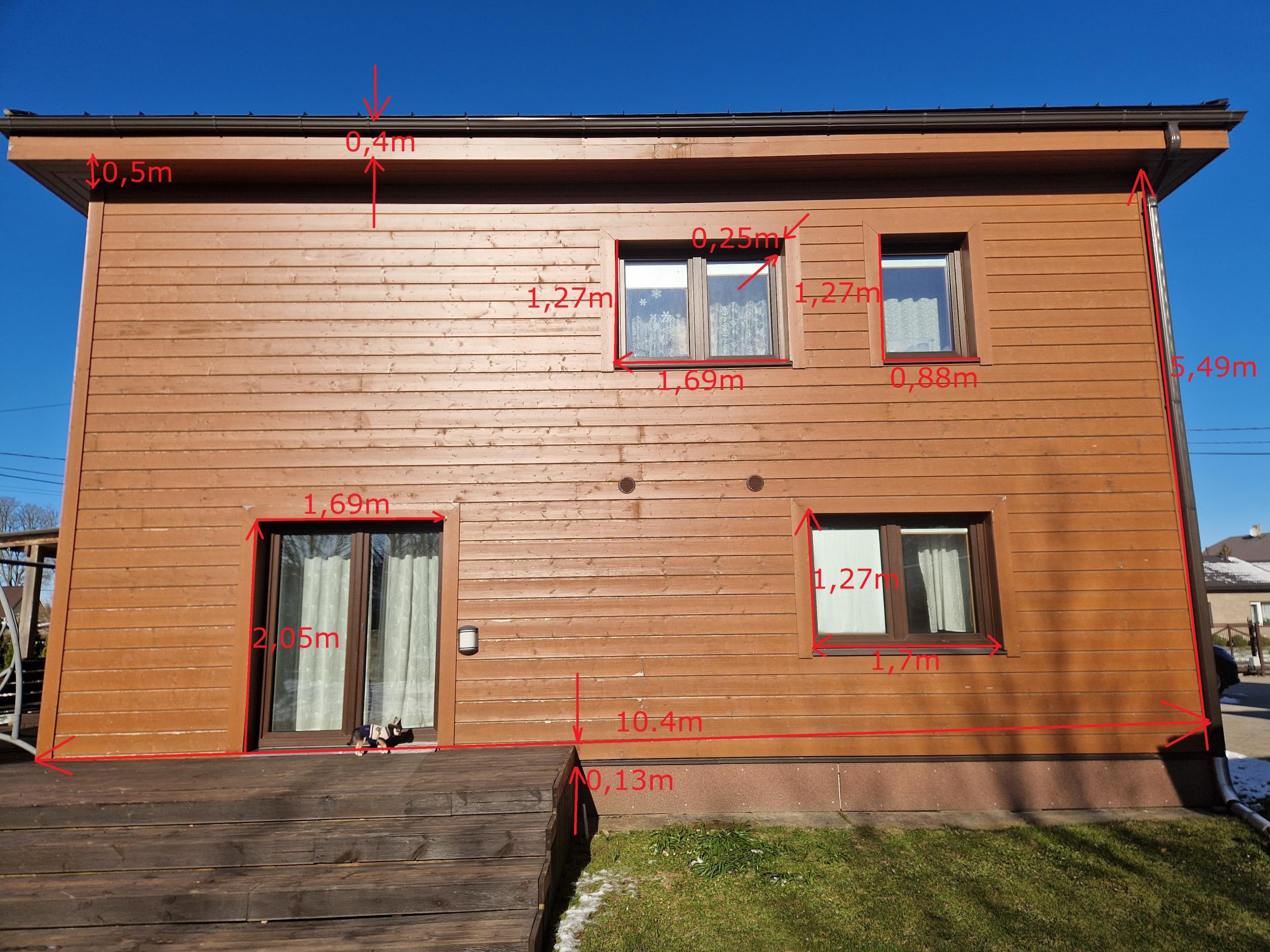 Maja 1 sein värvida värviga Pinoteks Wood Paint Extreme kahe kihiga. Mõõdud ühel pildil.