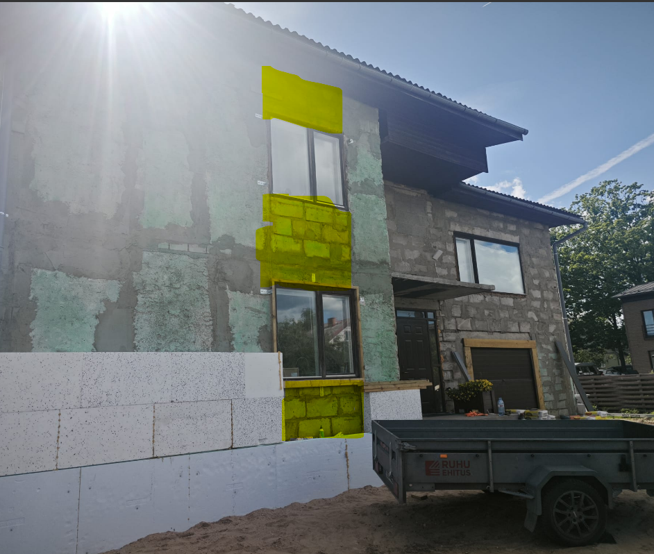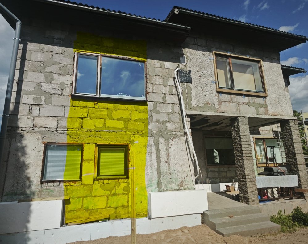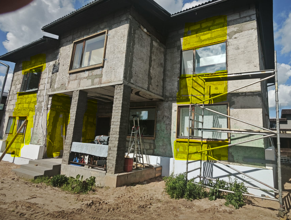 Hanke eesmärk on hoone välisseinte soojustamine 200 mm paksuste EPS 60 (vahtpolüstüreen) soojustusplaatidega. Töömaht on ca 160m2. Tööde käigus teostatakse aluspinna ettevalmistus, EPS plaatide paigaldus liimseguga ja mehaaniliste tüüblitega, vahutamine ning kõik vajalikud liite- ja nurkade lahendused vastavalt tootjatehnikale. Materjalid tellija poolt, tellingud kokkuleppel, tööga saab alustada umbes 14. juuli (Kokkuleppel ka varem või hiljem). Kollasega märgitud kohad akende all ja peal ja terrassil ei lähe EPS60 alla. Lisatööna võib pakkuda ka antud pinnale armeerimissegu paigaldamist koos profiilide ja võrguga, kruntimine ja silikoonkrohvi paigaldamist. Krohvitooniks tuleb valge. Töödega on alustatud, kuid hetkel töid teostav ehitaja ei ole võimeline ajanappuse tõttu lõpuni tegema töid. Pakkumise võib ka teha m2 hinnale.