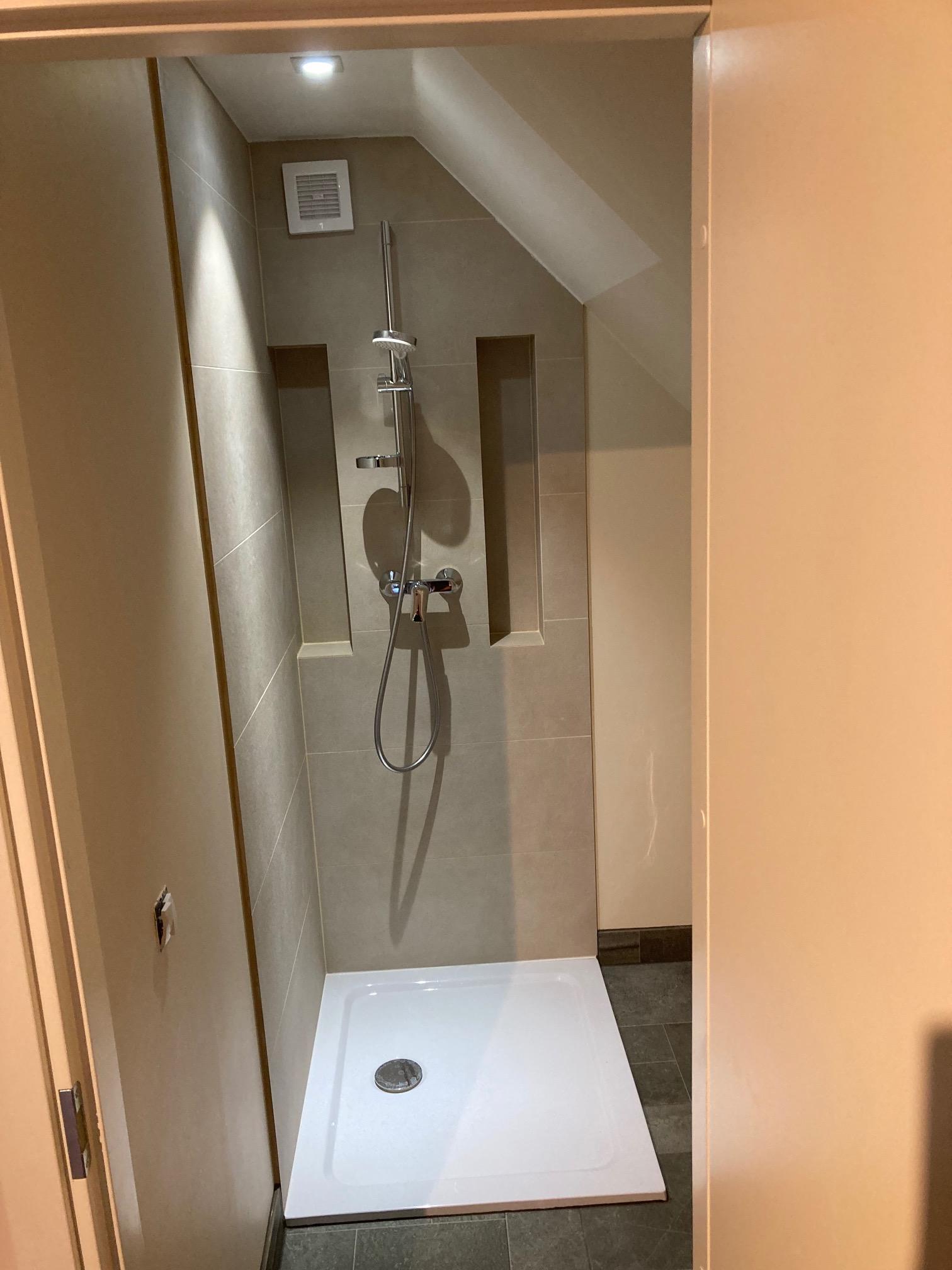Vajalik on mõõta, planeerida, valmistada ja paigaldada duššialuse kaks seina - üks külgsein ja uks. Duššinurk asub kaldkatuse all, selle tagumine sein ja üks küljeseintest on plaaditud. Maha on paigaldatud 90x80 cm duššialus. Sein peaks tulema kaldkatuse alla umbkaudsete mõõtudega kõrgus 184 cm ja laius 90 cm. Ukse lahendus vajab väljatöötamist aga laius on 80 cm ja kõrgus madalaimas nurgas umbes 184 cm, kõrgeimas umbes 223,5 cm. Kõrgeim osa enne katusekallet on tasapinnaliselt 40 cm lai. Võib mõelda ka kahepoolsele uksele, mille mõlemad pooled jäävad madalaima kõrgusega (u 184 cm). Ukse/uste avamiseks on võrdlemisi kitsas ala.