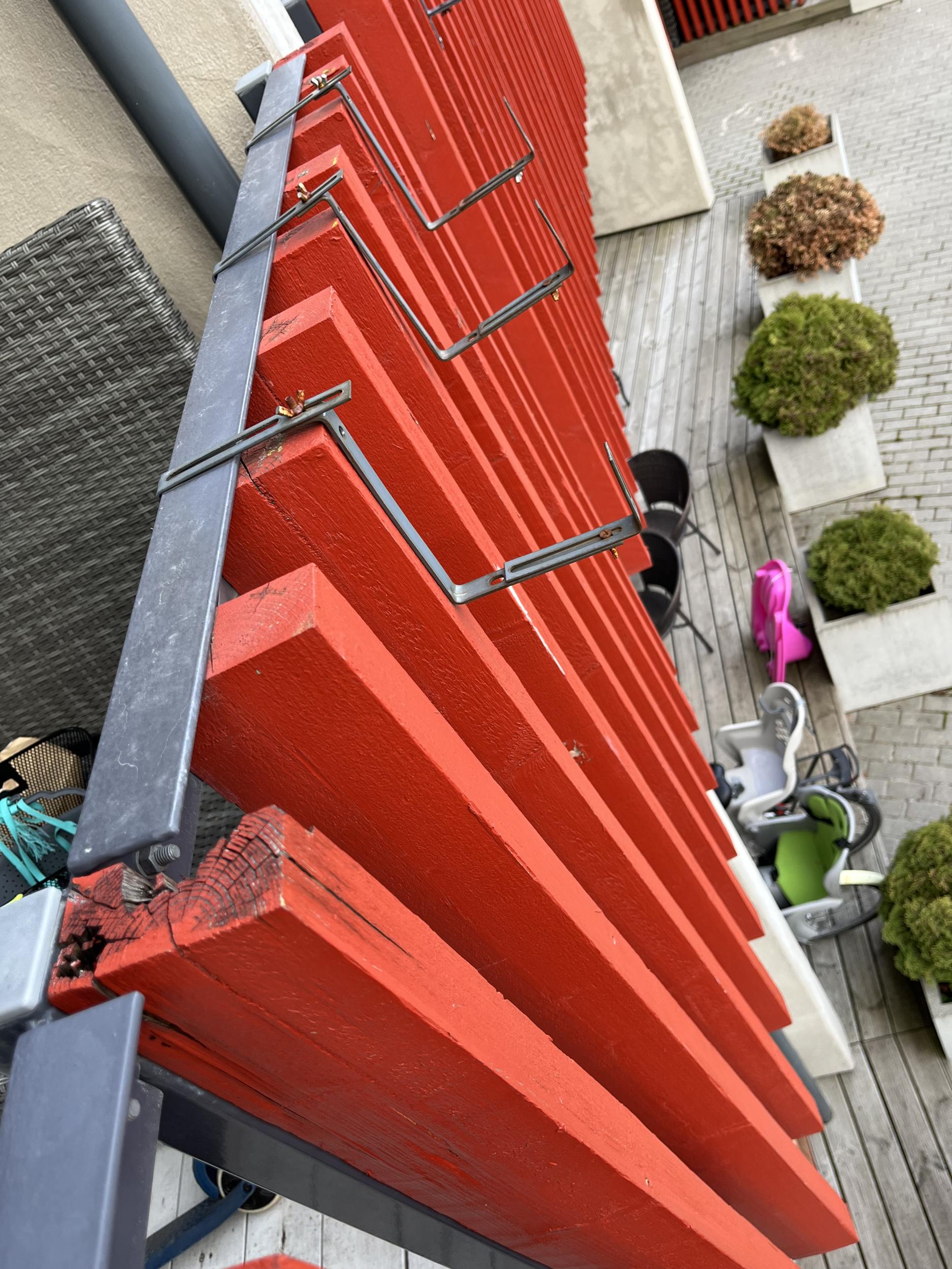 Ühel rõdul on hinnanguliselt 5 mädanenud lippi mis tuleb ära vahetada ja ülejäänutele tuleb teha värviparandus ja ümber keerata.