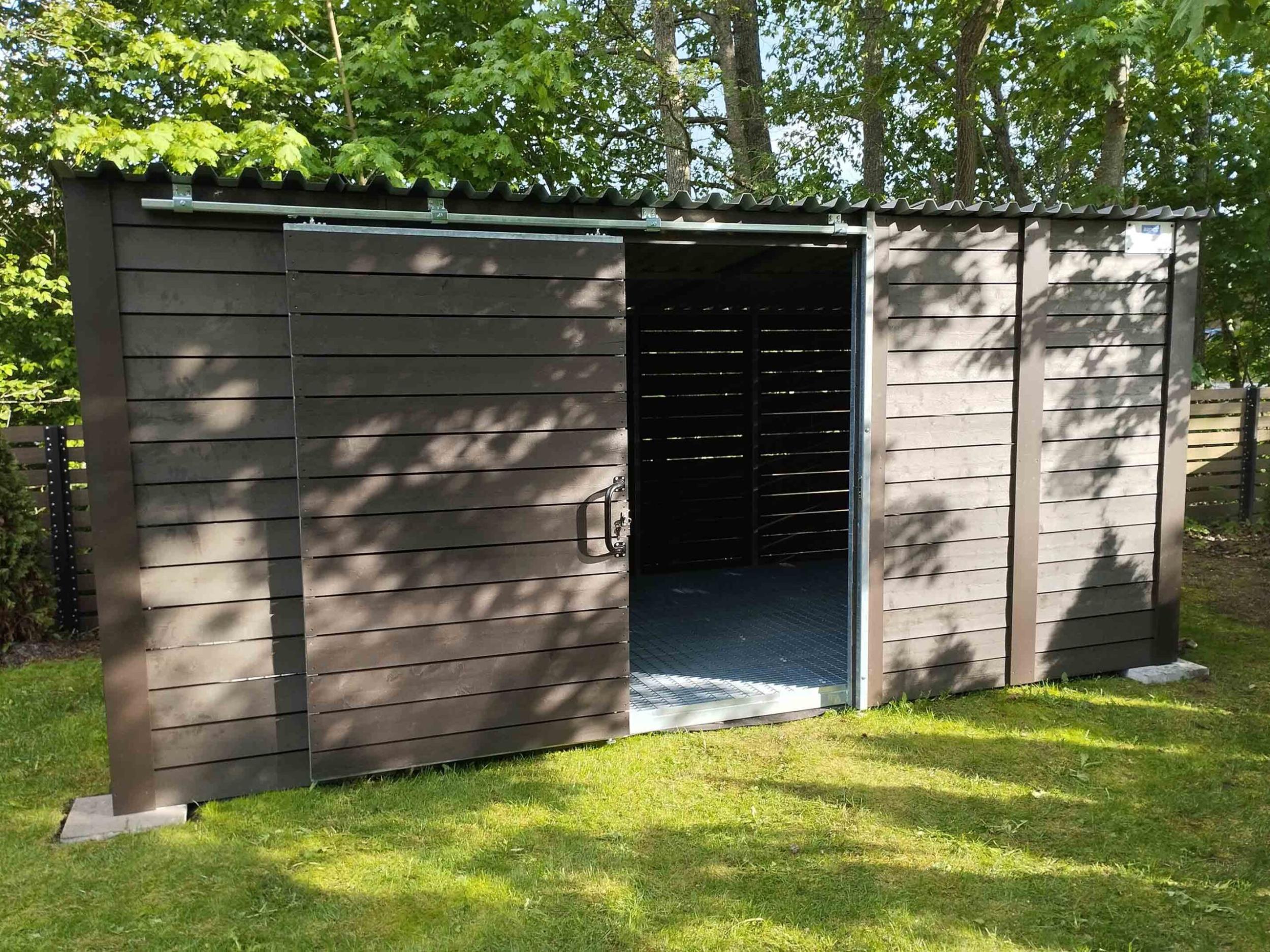 Töö / Materjal Hind €/tk või €/m² Kogus Summa € Kruvivaiad / postvundament 100 €/tk ~6 tk ~600 € Killustikalus (sõelmed) 35 €/m² 18 m² ~630 € (Alternatiiv: kõnniteeplaadid) 55 €/m² 18 m² ~990 € Puitkarkass + laudis + värvimine 230 €/m² 18 m² ~4,140 € Katuseplekk + paigaldus 90 €/m² ~20 m² ~1,800 € Liuguksed + siinid + paigaldus — — ~850 € Harko mehaaniline koodlukk ~170 € 1 tk ~170 € Rattahoidjad 50 €/tk 5 tk ~250 € Töö + materjalid kokku: ~8,440 € Lgp Sulev. |