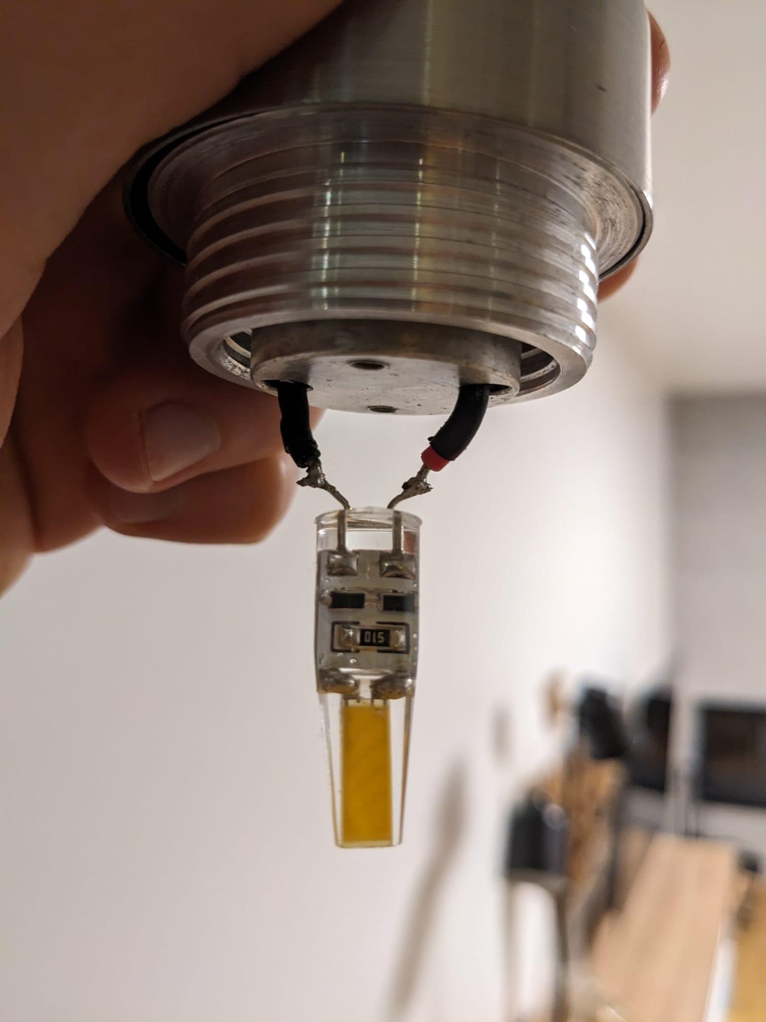 1) laua kohal oleval lambil on üks pirn läbi läinud, kuid see on joodetud kokku ja ise ma seda vahetada ei saa. Kindluse mõttes tahaksin juba kõik 3 korraga vahetada. Lambi tooni ma ei tea, kuid ehk saan välja uurida, kui vaja.