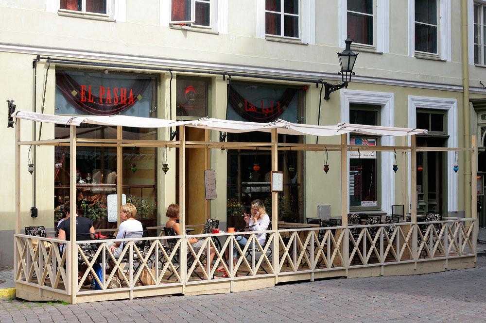 Oleme selliseid teinud vanalinnas. Karkassiks immutatud prussid, mille all terrassikandurid. Immutatud laudis., mis kinnitatud varjatud kruvide süsteemiga.