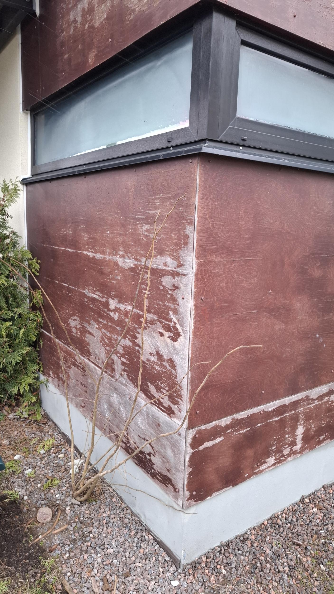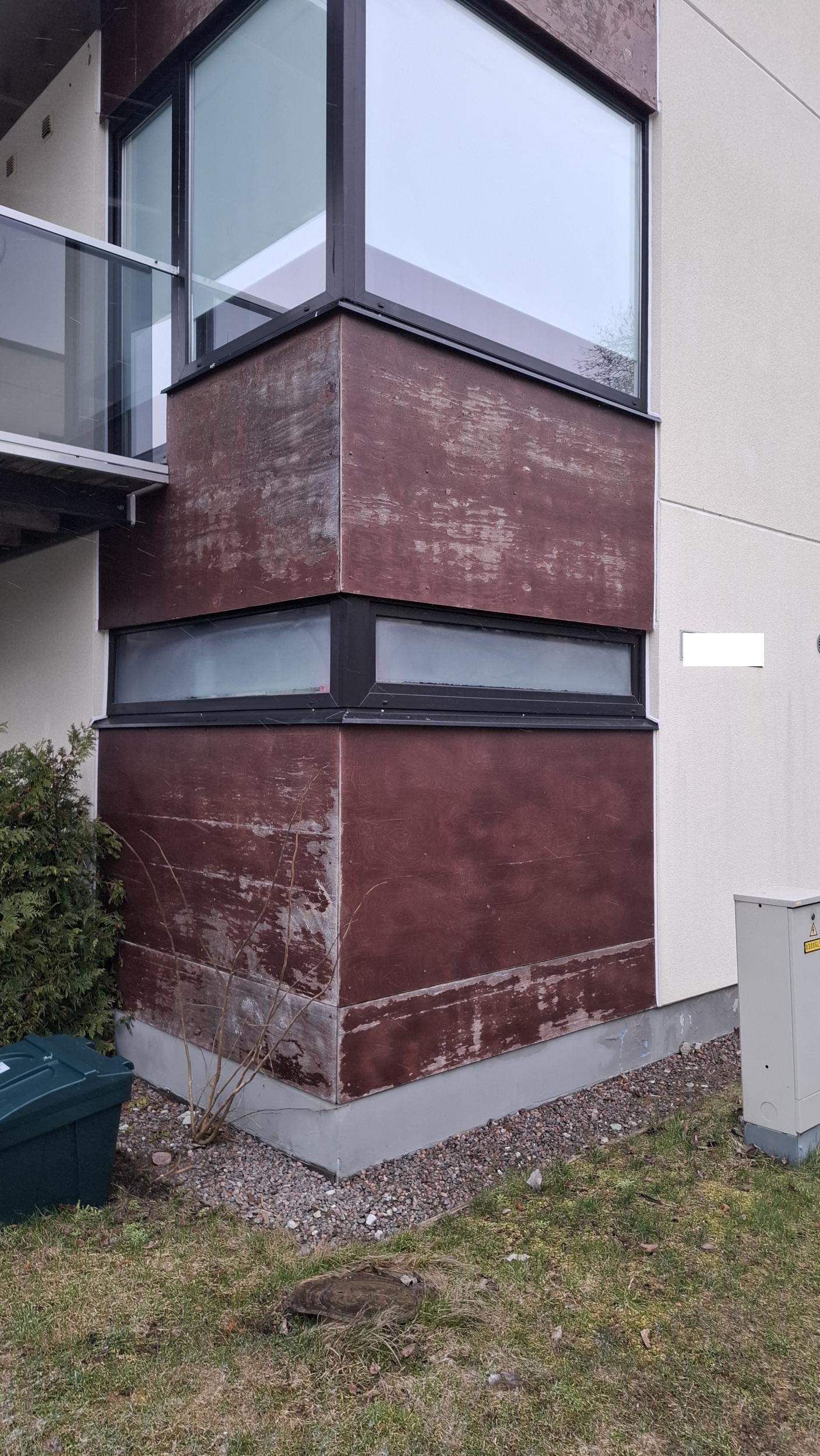 Kokku on vaja puhastada ja värvida 6tk maja fassaadi vineerist nurgaplaadid. 4 tk on 4-korruselised, 2 tk on 3-korruselised.