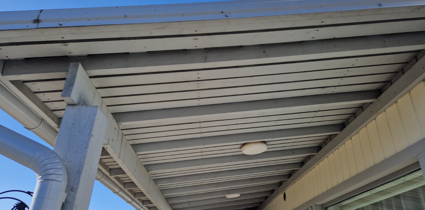 Varikatuse konstruktsioon, katusealune vooderdus ja võreseinad halli värvi s2502-b.