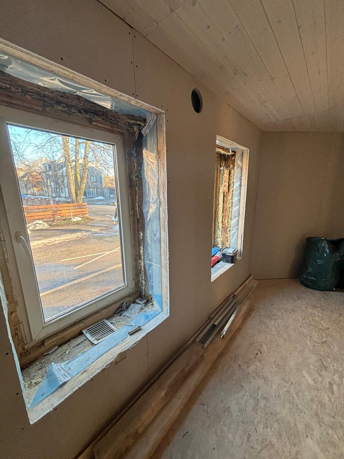 Hind sisaldab avade suurendamist (kipsi eemaldus ,, palkseina ava suuremaks lõikamine, seinakarkassi õigesse kohta paigaldus ja kipsplaadi tagasipaigaldus)ja akende paigaldamist. Materjalid tellija poolt.