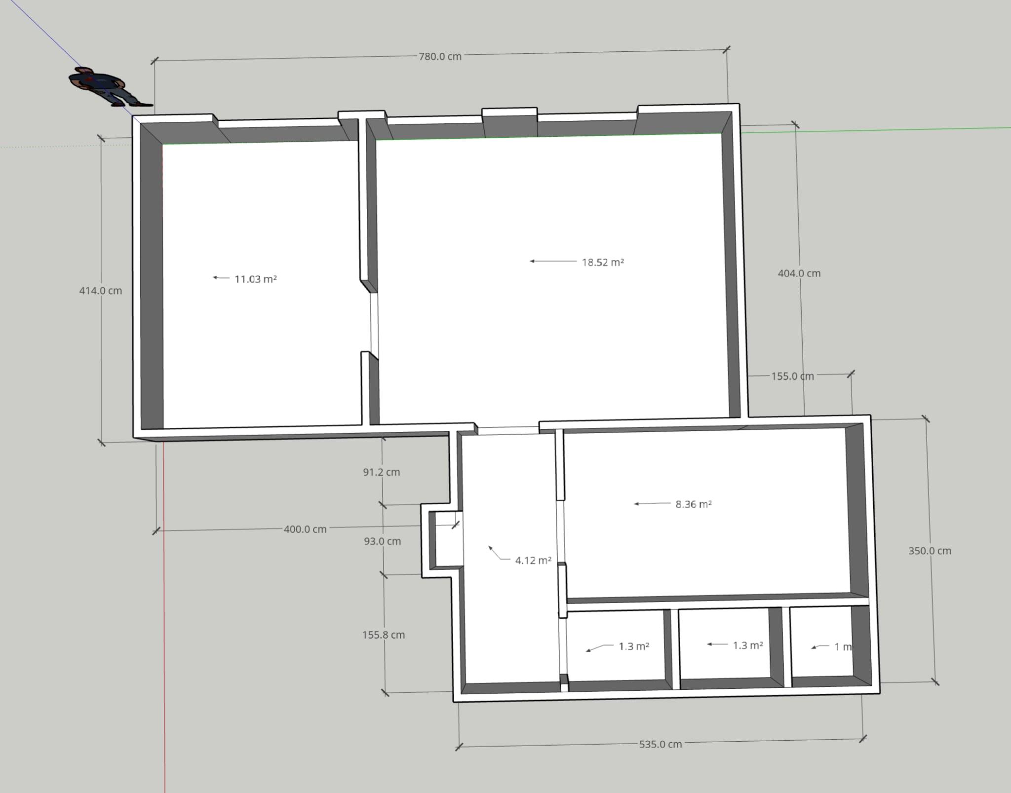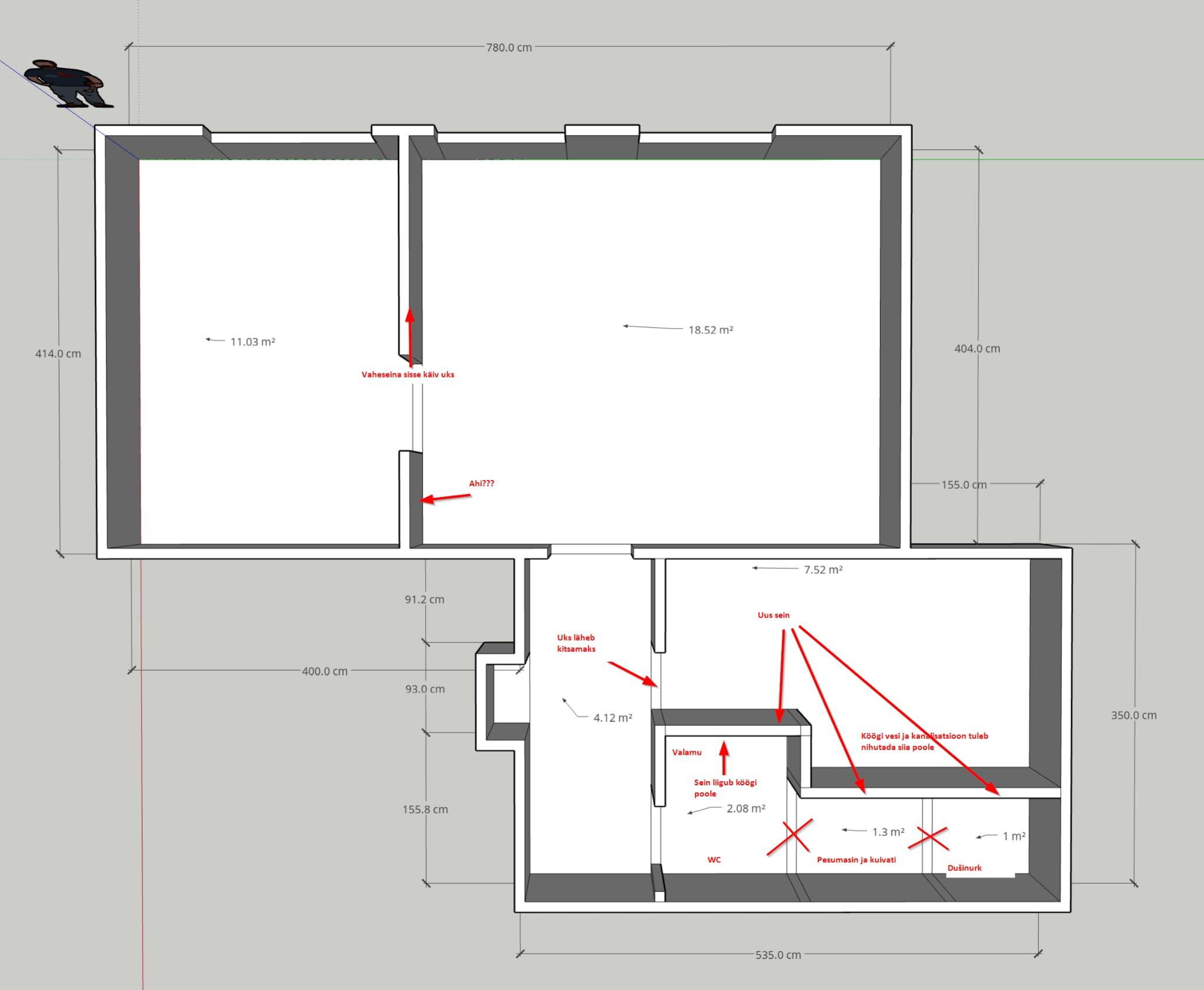Ühe olemasoleva vaheseina nihutamine 40 cm (lammutus + uue seina ehitus).