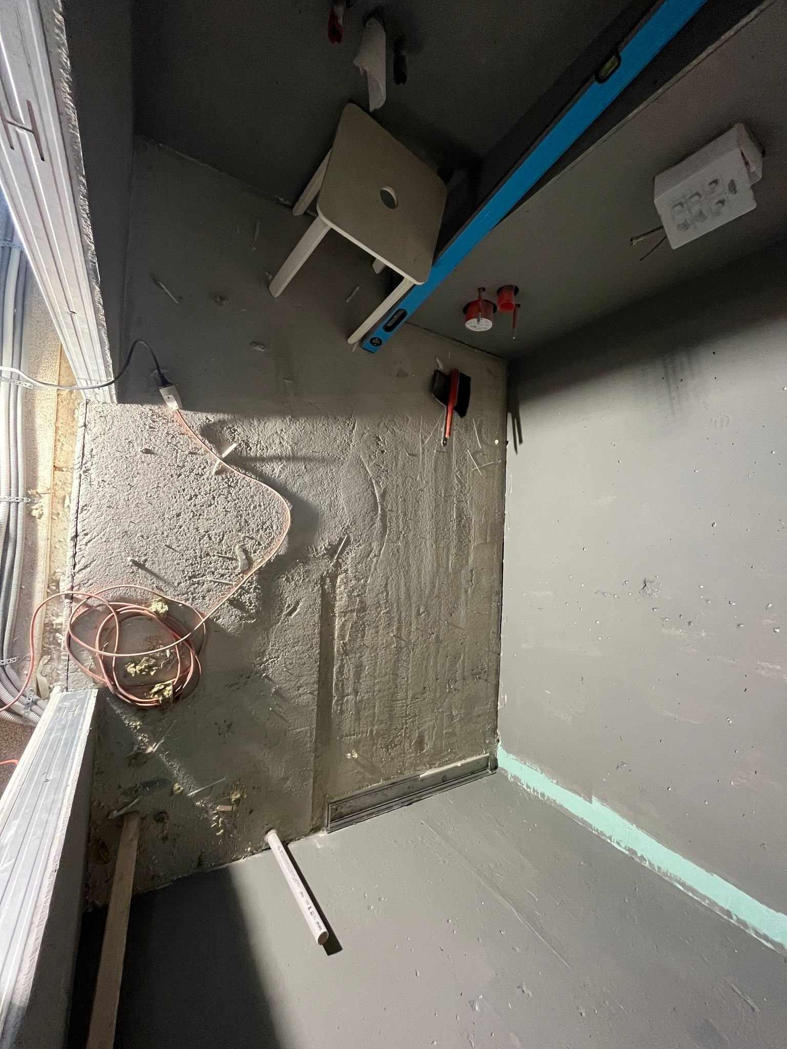 Hüdroisolatsioon saab endal tehtud. Pesemiskoha parem serv tuleb viimistleda kaldeliistuga.
