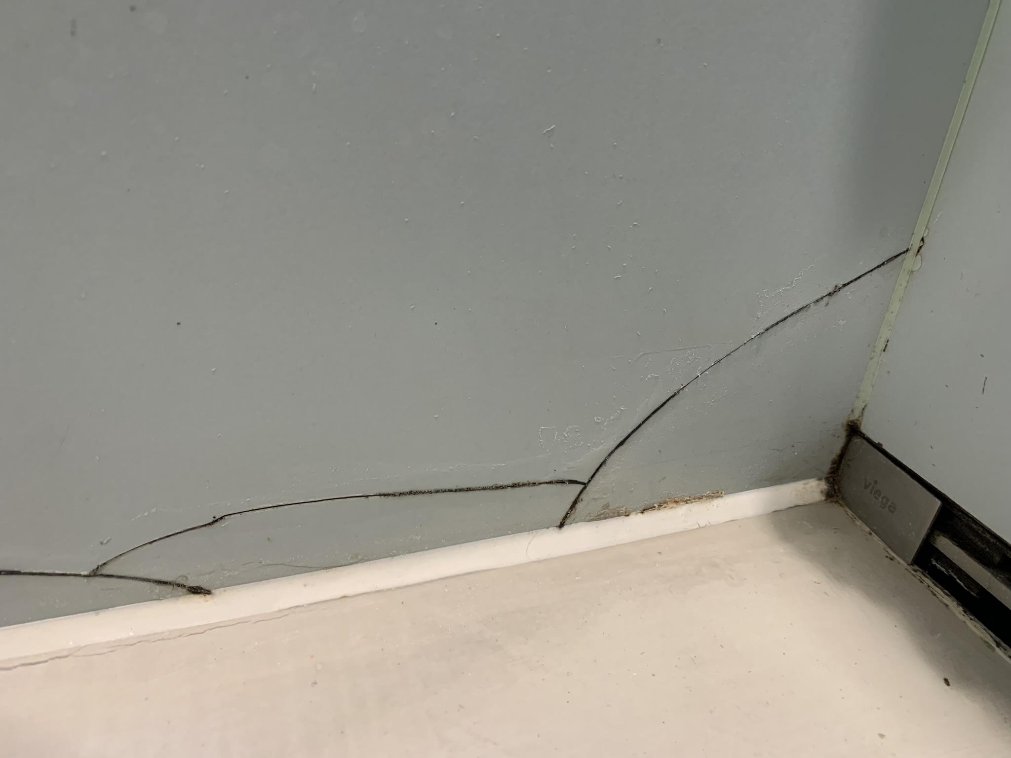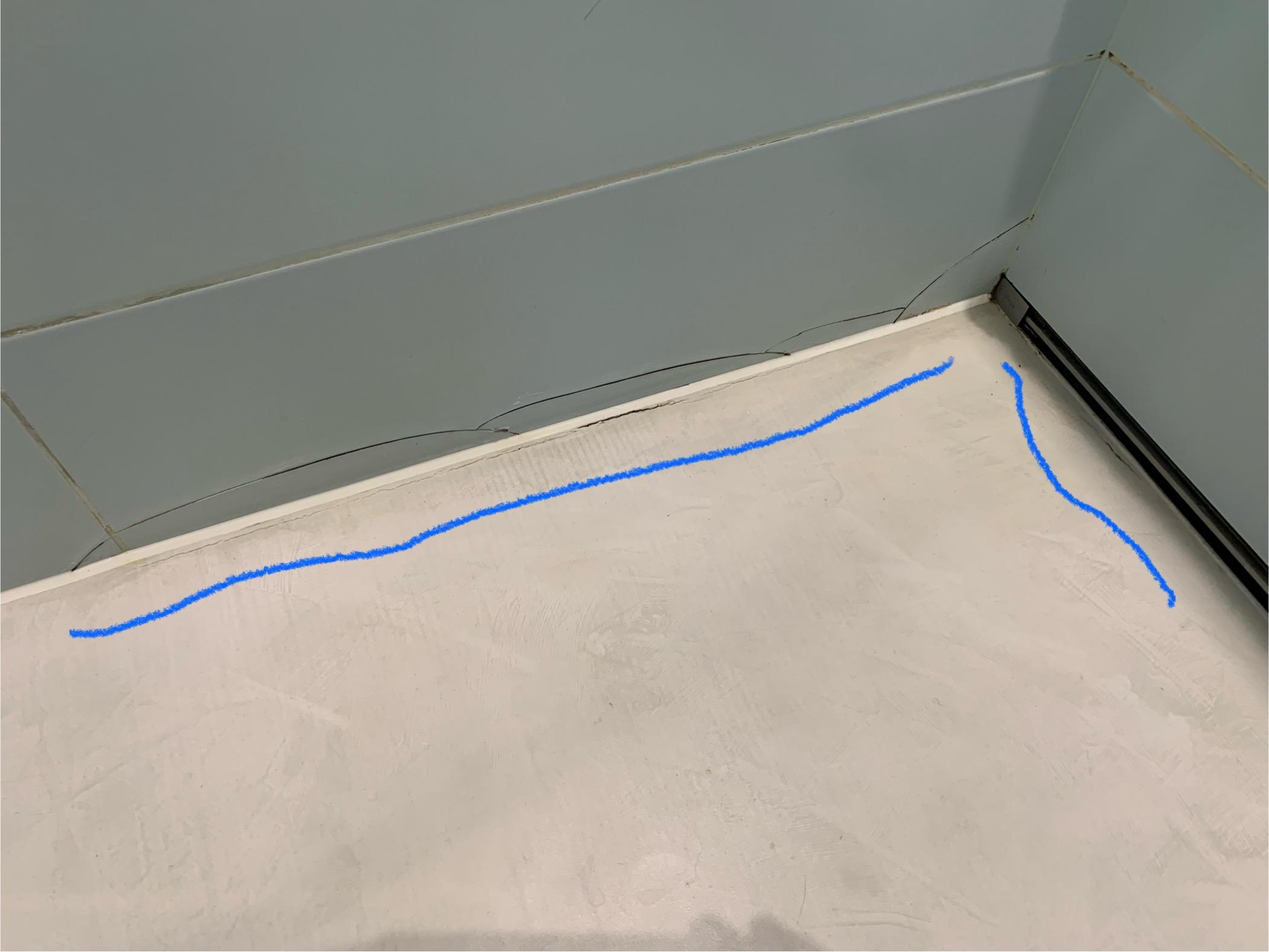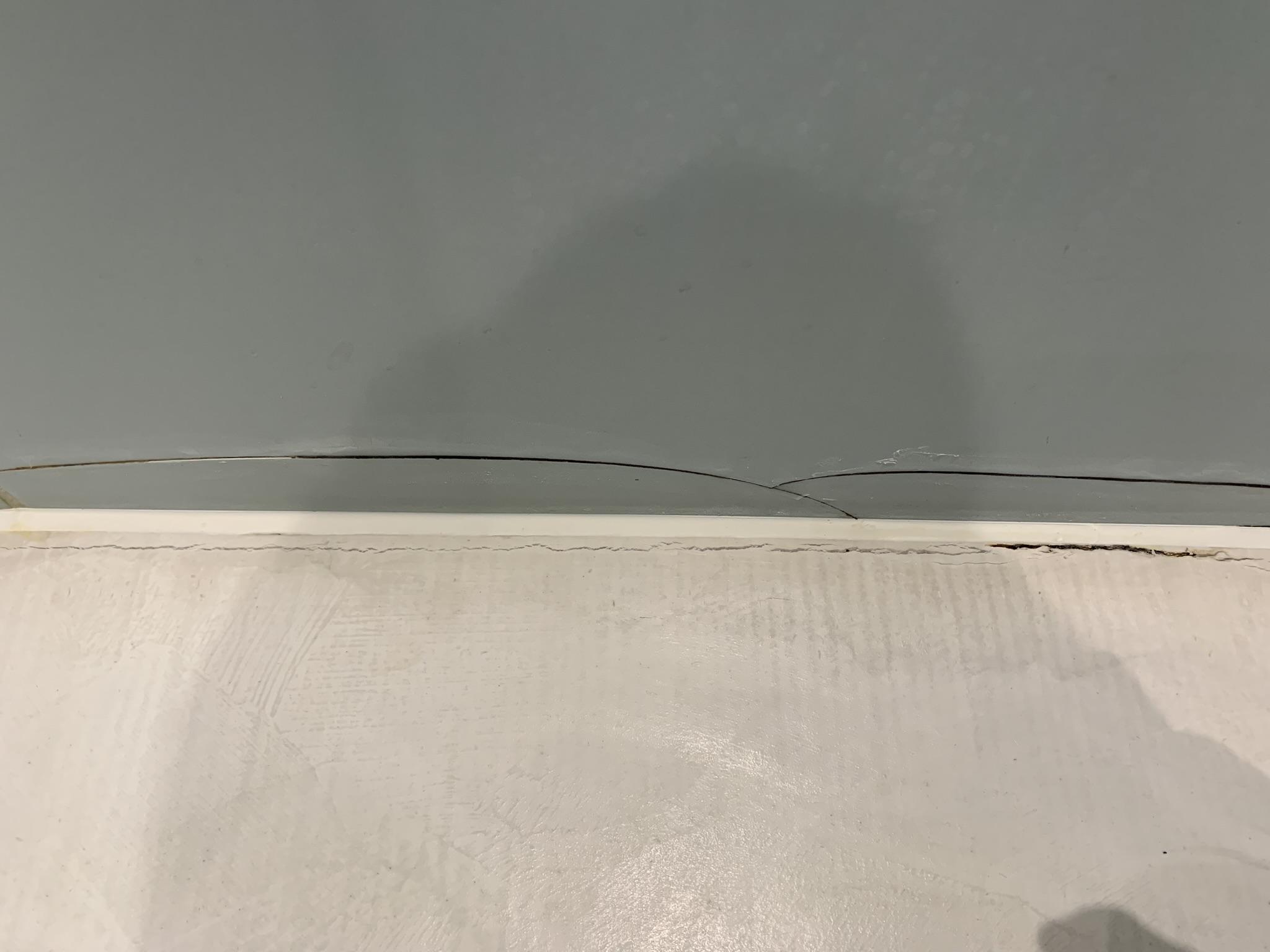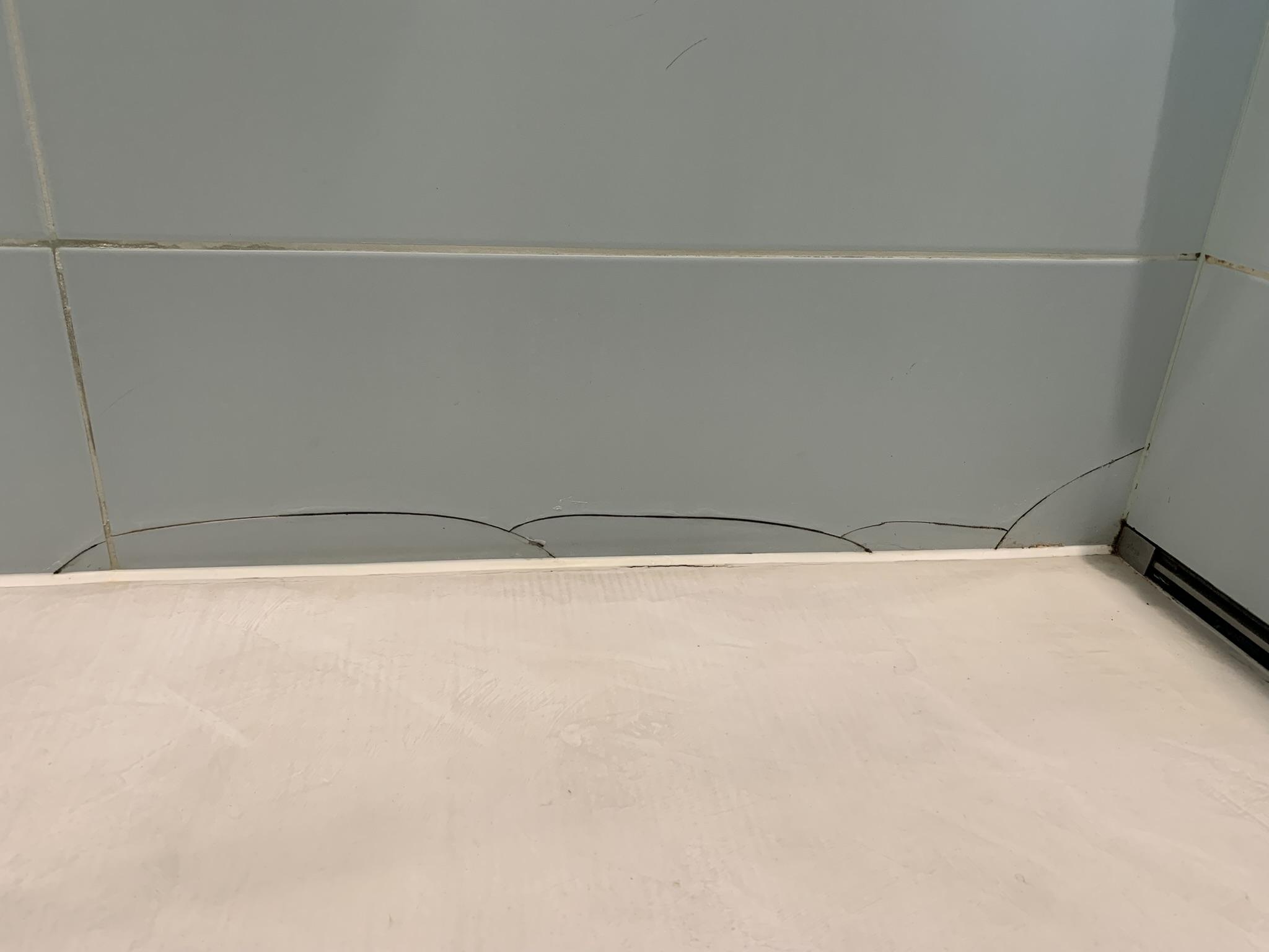3 aastat vana ridaelamuboxi vannitoas seinaplaadid ja mikrobetoon põrandal pragunenud (tõenäoliselt maja konstruktsioonide vajumise/mängimise tõttu).