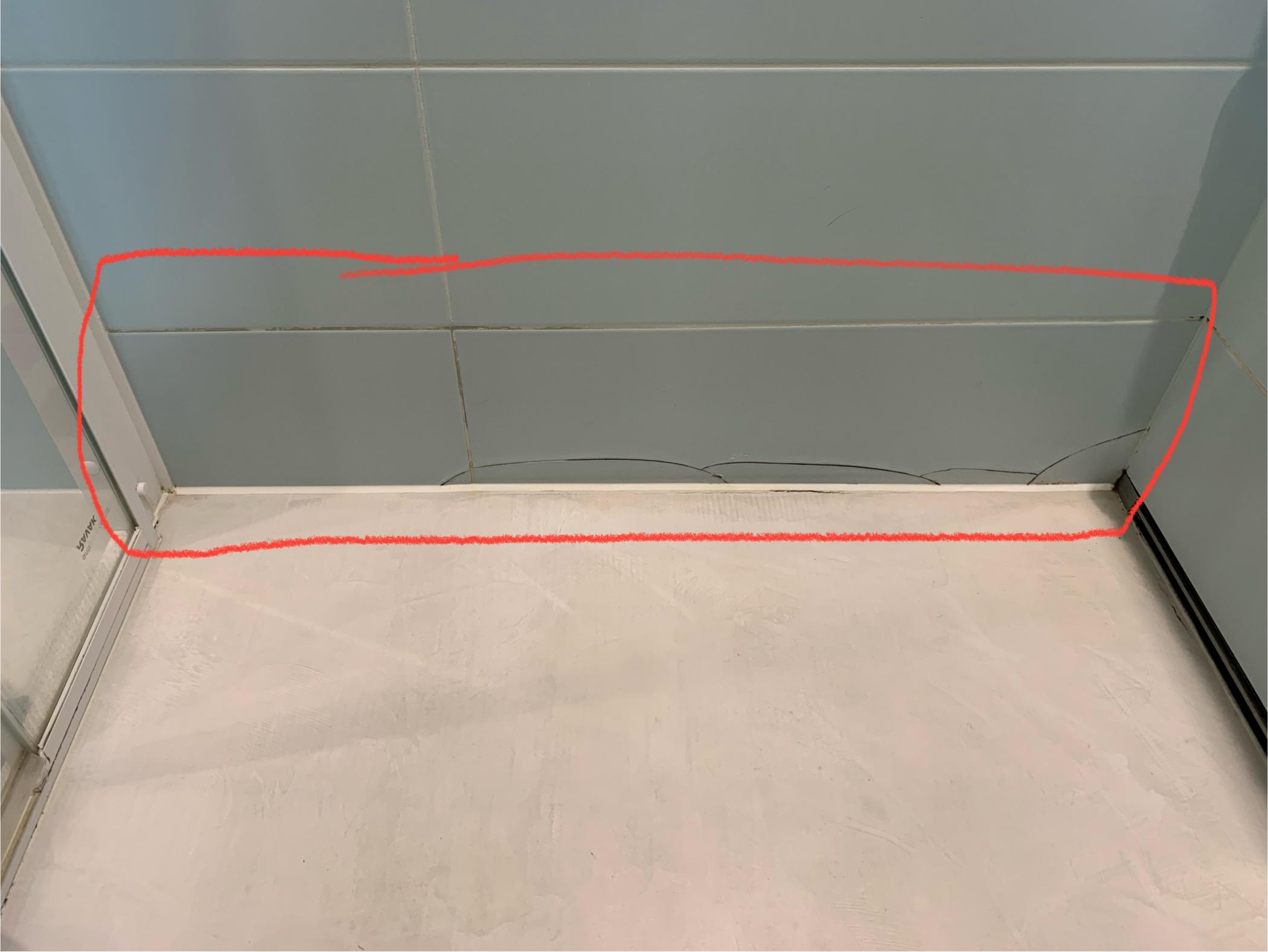 1) Kahe pragunenud seinaplaadi vahetus (plaadid olemas). Pildil märgitud punasega. Üks plaat tuleb tõenäoliselt pooleks lõigata duššikabiini seina koha pealt.