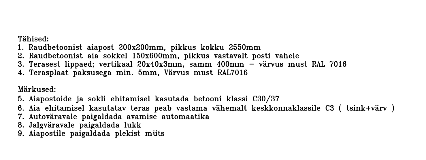 Pakkumine teha palun vastavalt projektile ja lisada ka puldiga väravaautomaatika.