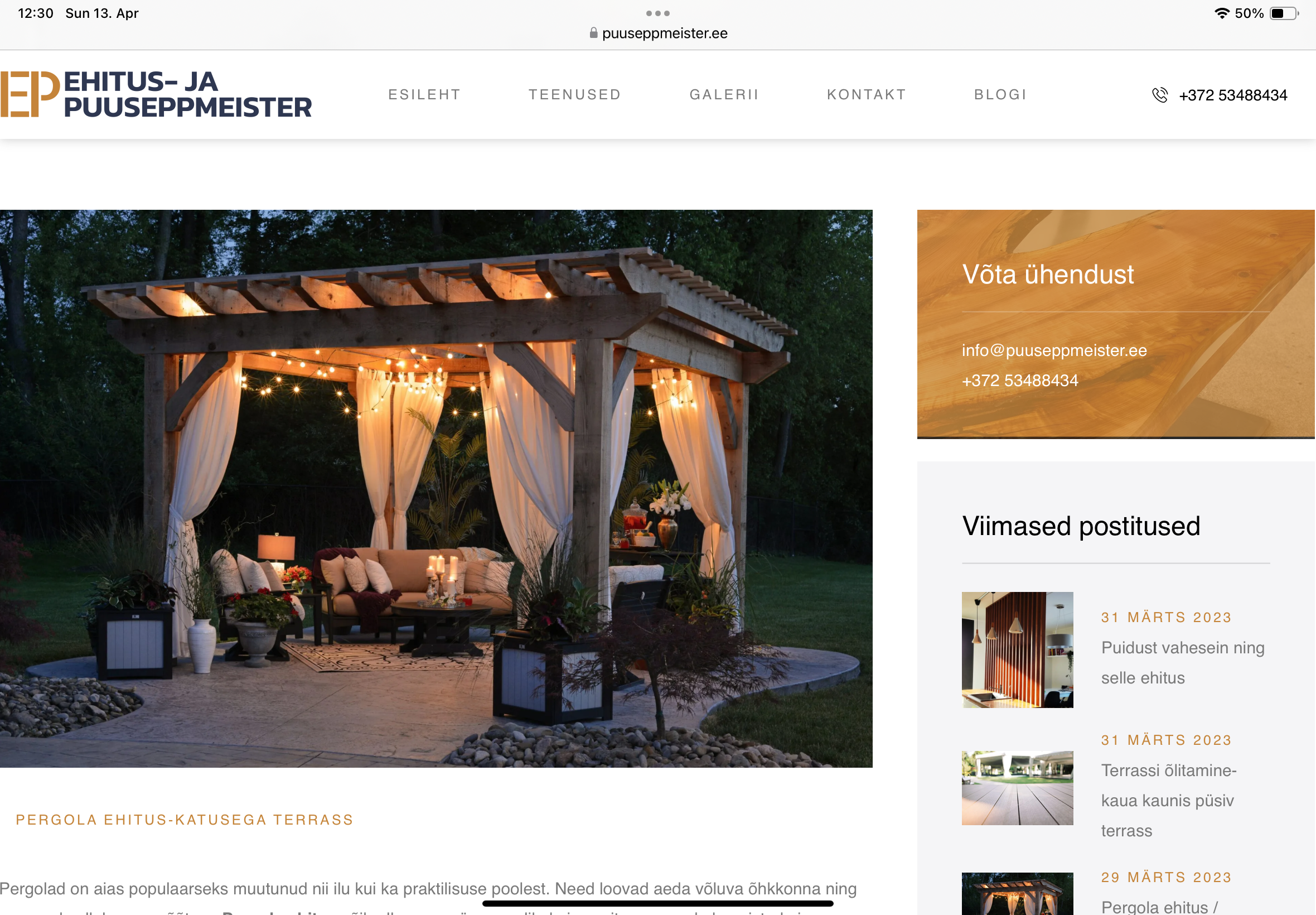 Pakkumine terrassi ehitusele koos materjalidega, pergola hind algab ca 1500€, sõltuvalt täpsemast disainist võib hind muutuda.