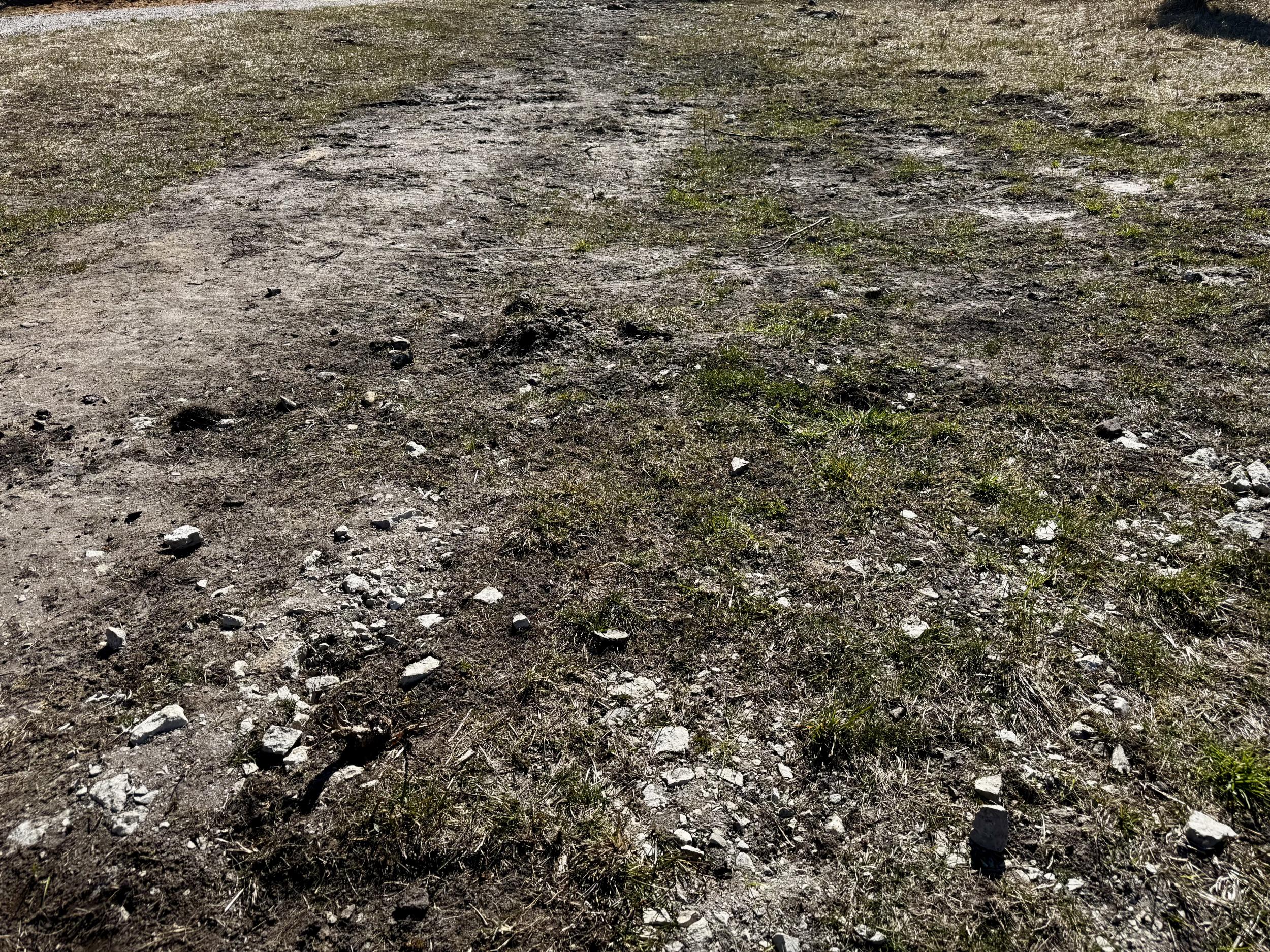 Maamaja ümber oleva loodusliku rohumaa korrastamine pärast kaevetöid (kanalisatsioon, elekter ~ 100 m). Kaevetöödest pinnale tulnud paekivitükkide ning juurte eemaldamine (masinaga?), suuremate aukude täitmine, vajadusel mulla lisamine. Ala suurus 45x40 meetrit.