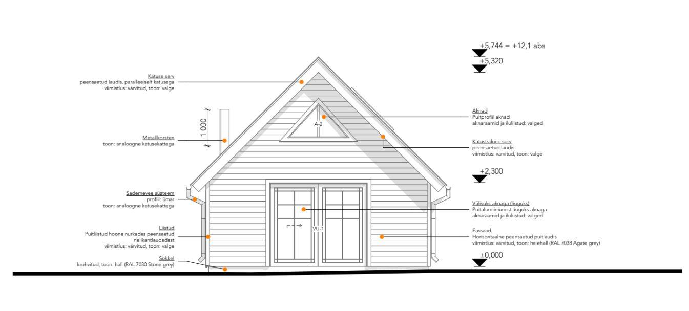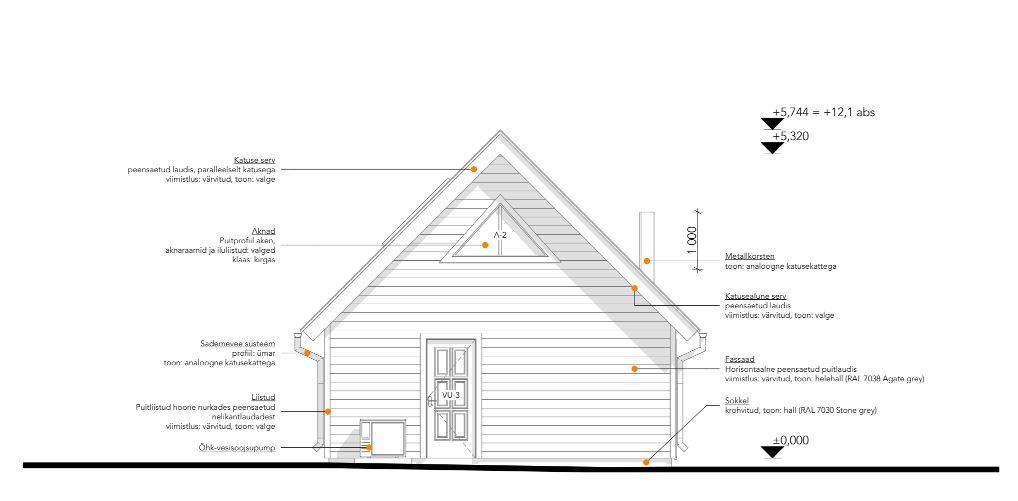Otsaseinte kõrgus tuulekastist on 3,2m (harjani), seega sokliplekist harjani 5,4m.