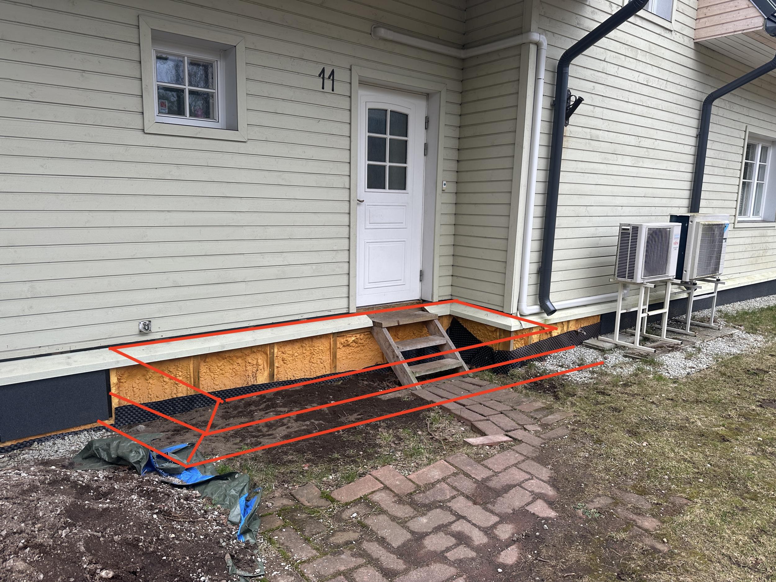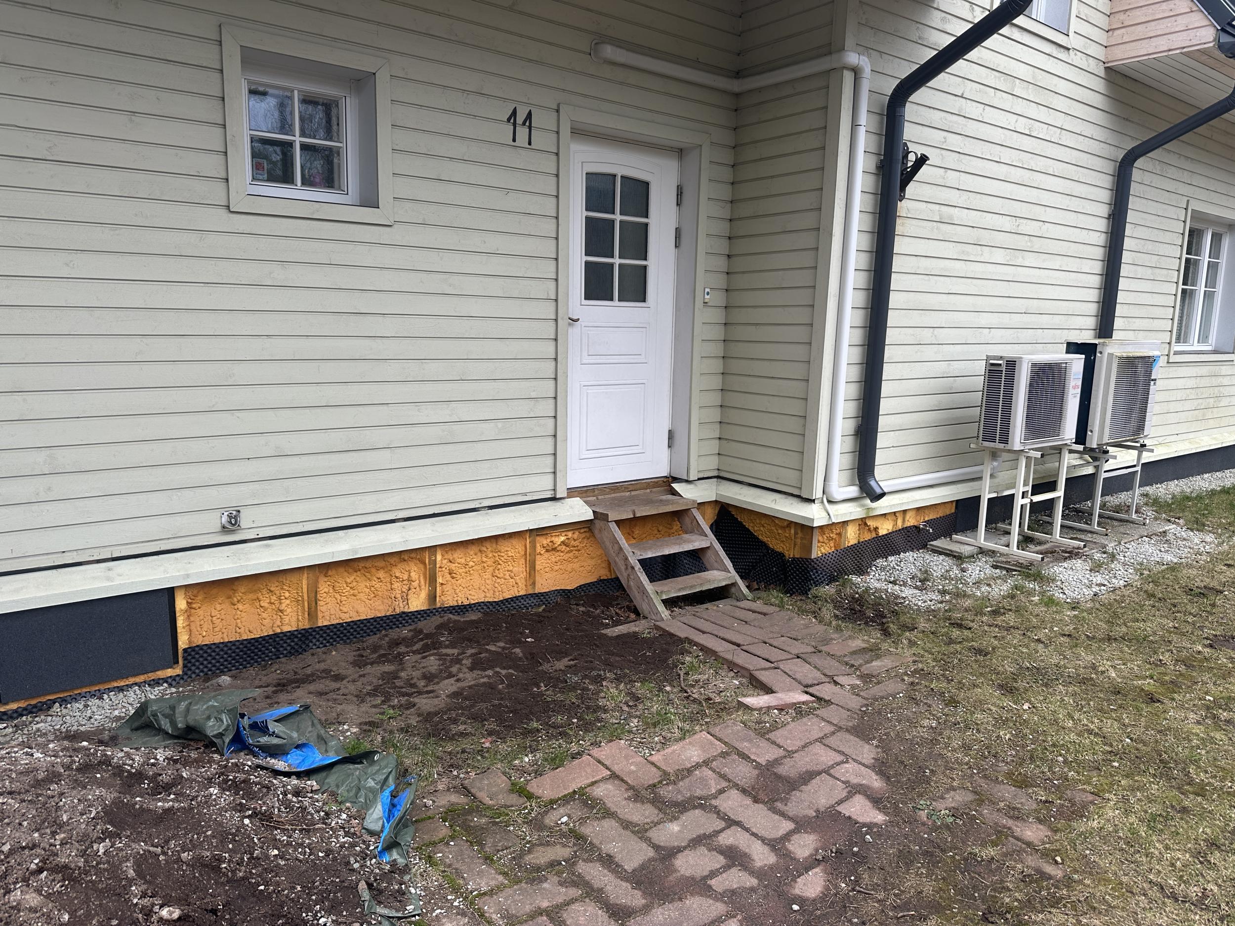 Lisaks: Ülemineku plekk sokli ja ukse juurde + maja nurka