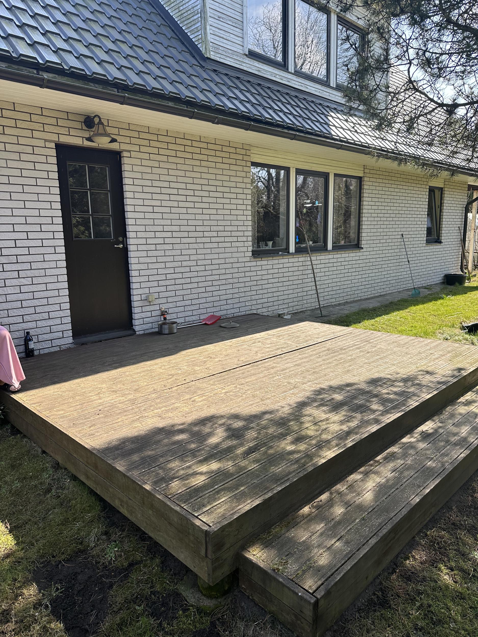 Pakkumine sisaldab. -vana terassi lammutus ja utiliseerimine 20m2 -uue terassi ehitus 20m2 -vajalikud materjalid ja tarvikud -materjalide transport -portaali teenustasu Heade soovidega, Kristjan |