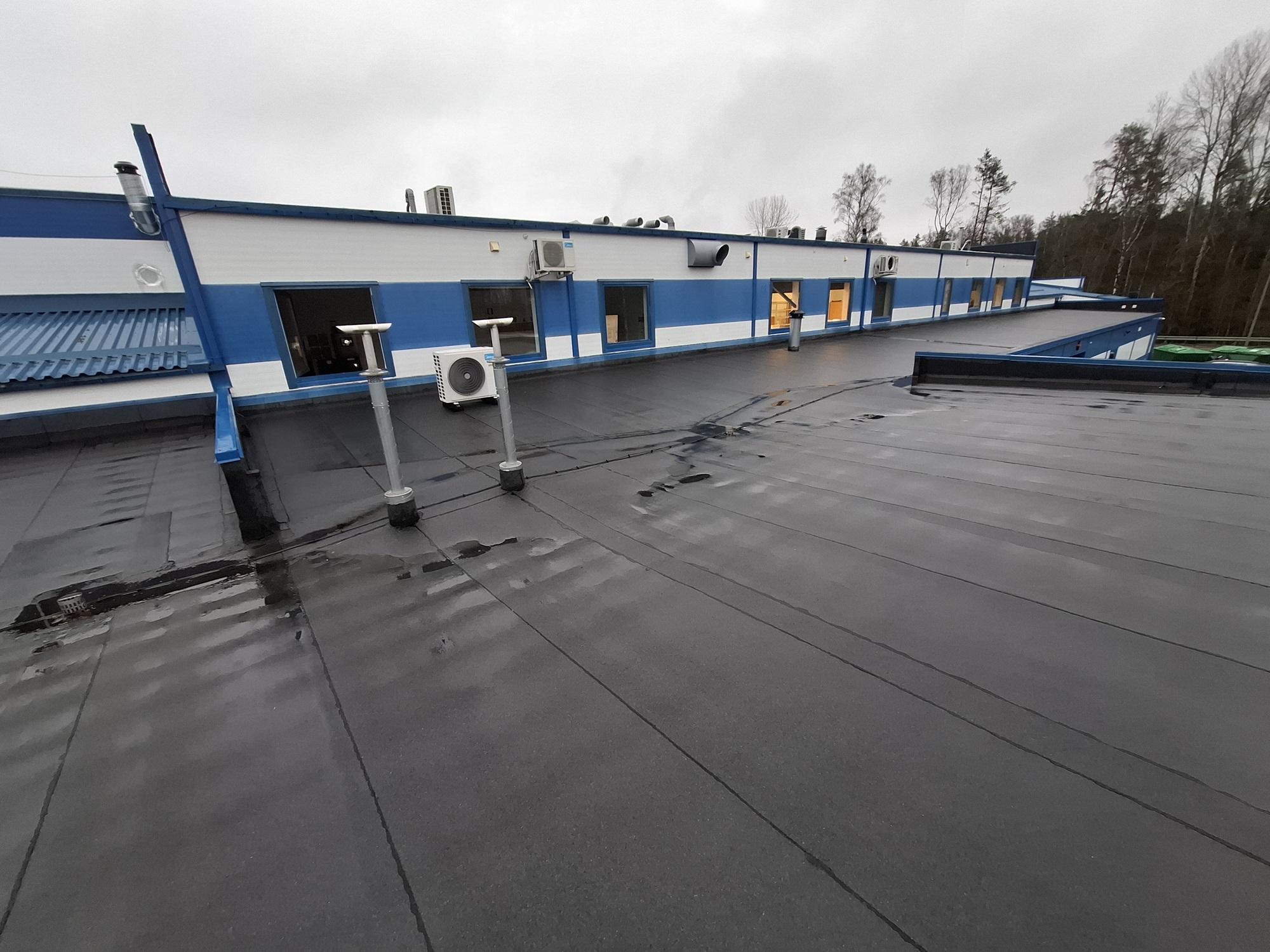Vaja tüüblikohad lahti lõigata ja tüüblid teiste vastu välja vahetada. Tüüblitele aluskatte materjal peale põletada ja siis kogu katus uuesti üle katta ühe kihi SBS-ga. Pinda kokku 170m2. Gaas töö teostaja poolt. Ülespöörded pole vajalikud.