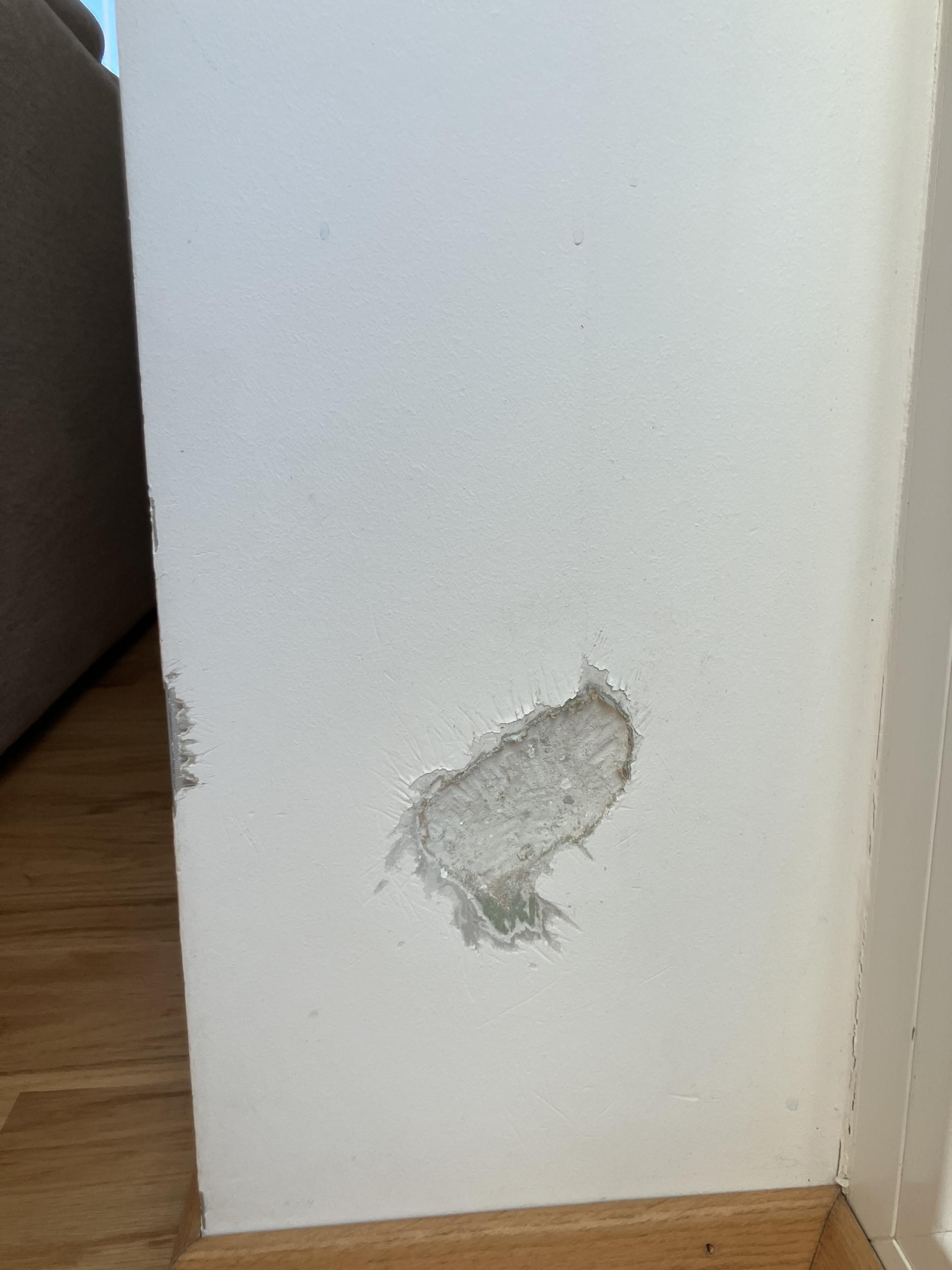 Tarvis on teha värvitöid. Esiteks oleks tarvis üle värvida / parandada aknapõski, kus on tekkinud praod. Aknaid on kaks. Teiseks on tarvis teha korda mõned lemmiklooma tekitatud kahjustused (suur auk aknapõses, näritud aknalaud, näritud seinanurk). Töö esimesel võimalusel.