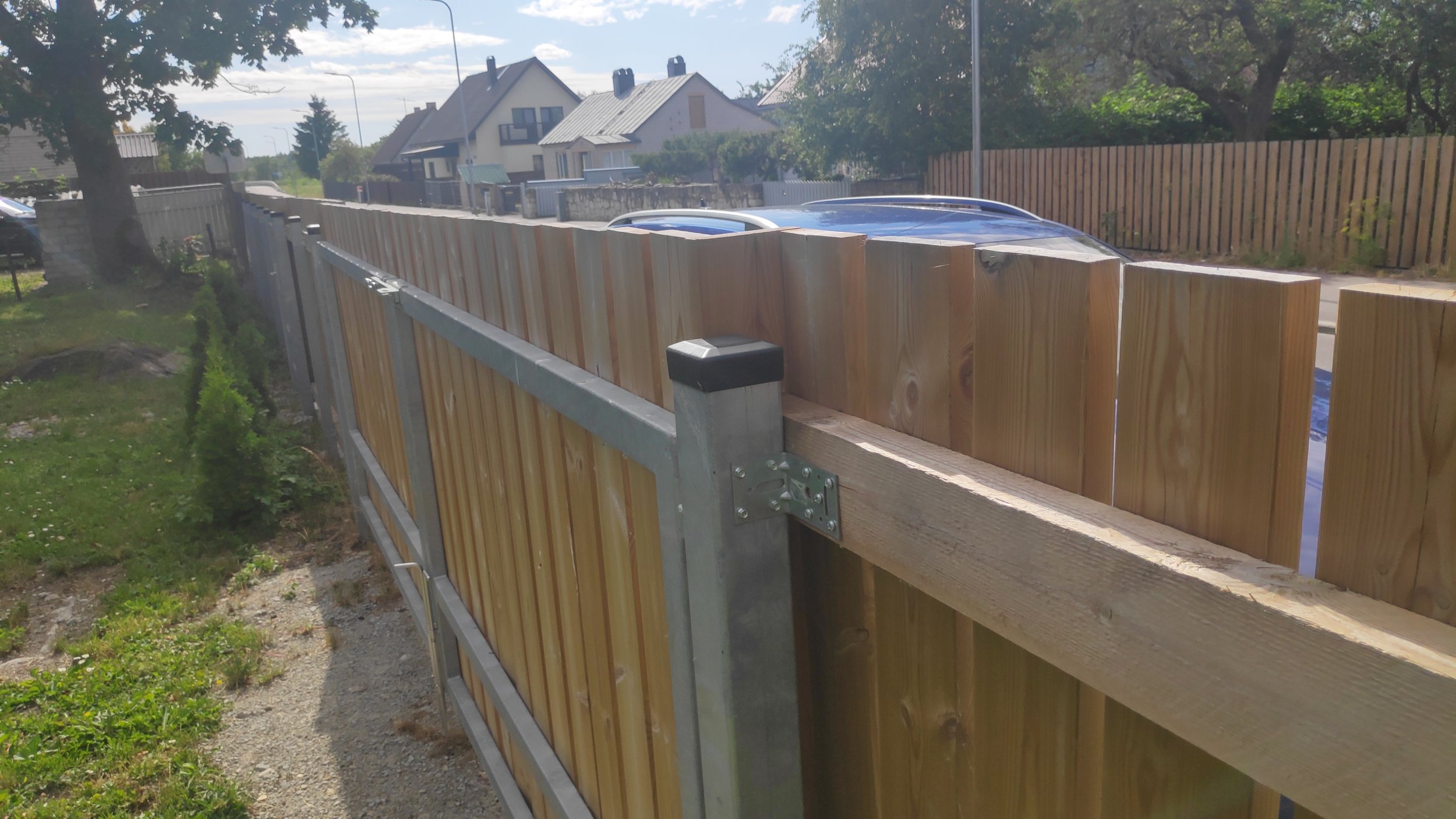 150cm kõrgune piirdeaed ja väravad vastavalt hanke kirjeldusele. 60x60 tsingitud metallpostidel vertikaalne puitlippaed. Aialipid ja horisontaalid tööstuslikult süvaimmutatud. Tiibvärav reguleeritavate hingedega, tabalukuaasad ja maariivid. Raamid kuumtsingitud. Postid betoneeritud, pinnasesse. Omame piirdeaedade ja väravate paigaldamisel igapäevaseid kogemusi üle 16a. Garantii vastavalt seadusele. Lisasoodustuse võimalus peale objektiga tutvumist. Vastame meeleldi tekkivatele küsimustele.