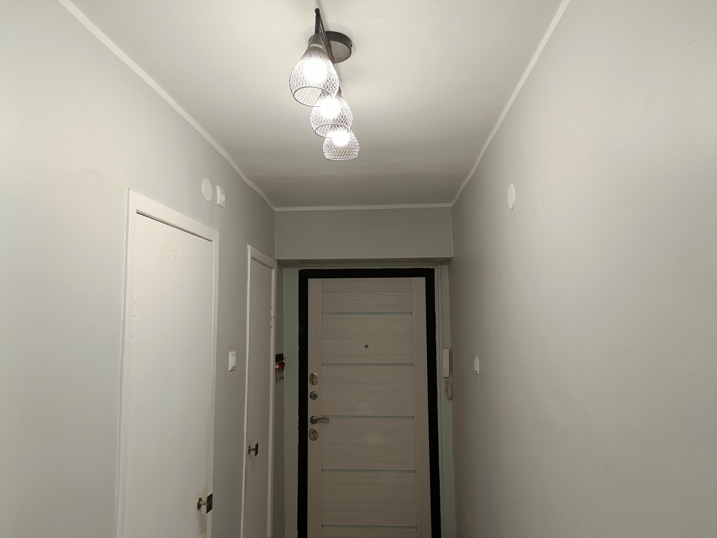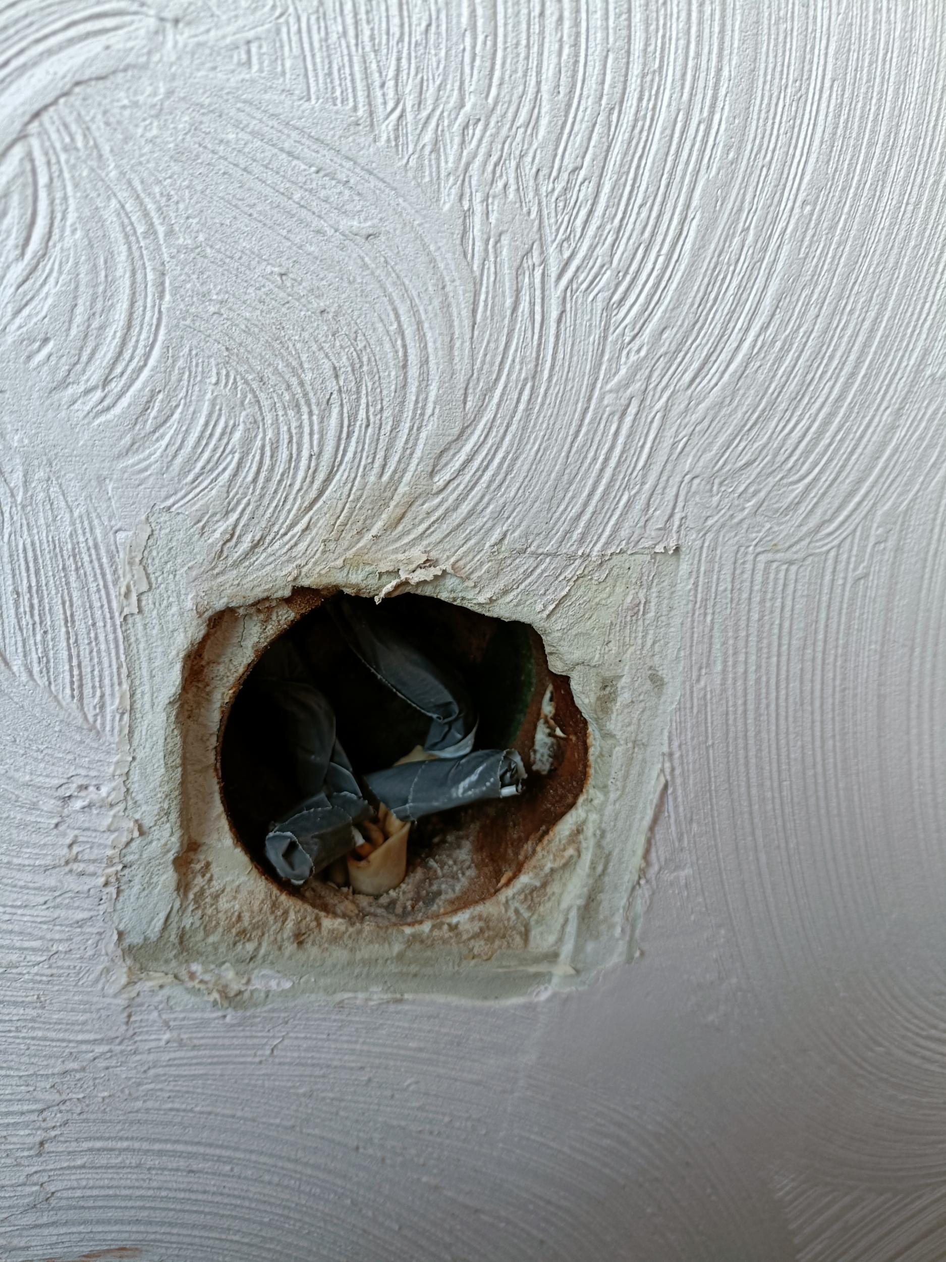 Nõukogude aegse elektrisüsteemi vahetus viienda korruse korteris. Trepikoja kilbist tuleks tuppa vedada uus juhe. Korteris sees eraldi kilpi pole. Juhtmed tuleks vedada laest, aga seinte sisse freesida sooned - pistikute ja lülitite jaoks. 11 pistikut ja 5 lülitit.