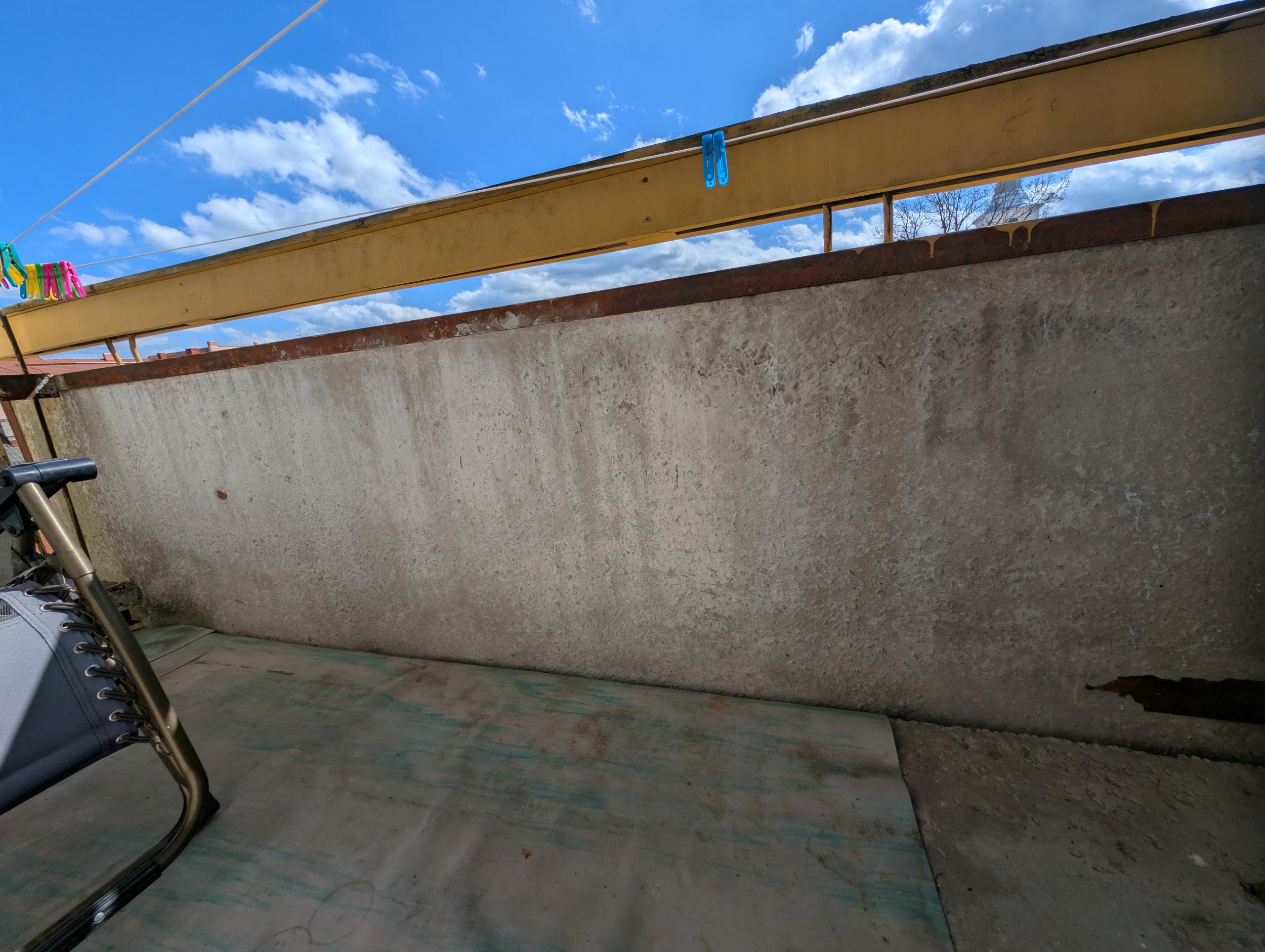 Rõdu suurus on 120x320, kõrgus 267 cm. Oleks vaja teha rõdu põrand veekindlaks. Seinad oleks vaja krohvida. Kõige suurem probleem on selles, et ülemisest äärest paremalt lahkab vihma ajal vett alla rõdule. See auk oleks vaja kinni panna või lahendada probleem kaldus veerenni paigaldamisega rõdu ülemisse äärde, et allasadav vesi jookseks väljapoole rõdu. Mõte on ka hiljem mingi terassi põrand teha, aga ilmselt seda teeks veidi hiljem. Rõdu piirdelaud vajaks ka vahetamist võimalusel veidi laiema laua vastu (hiljem kunagi on plaanis rõdu ära klaasida).