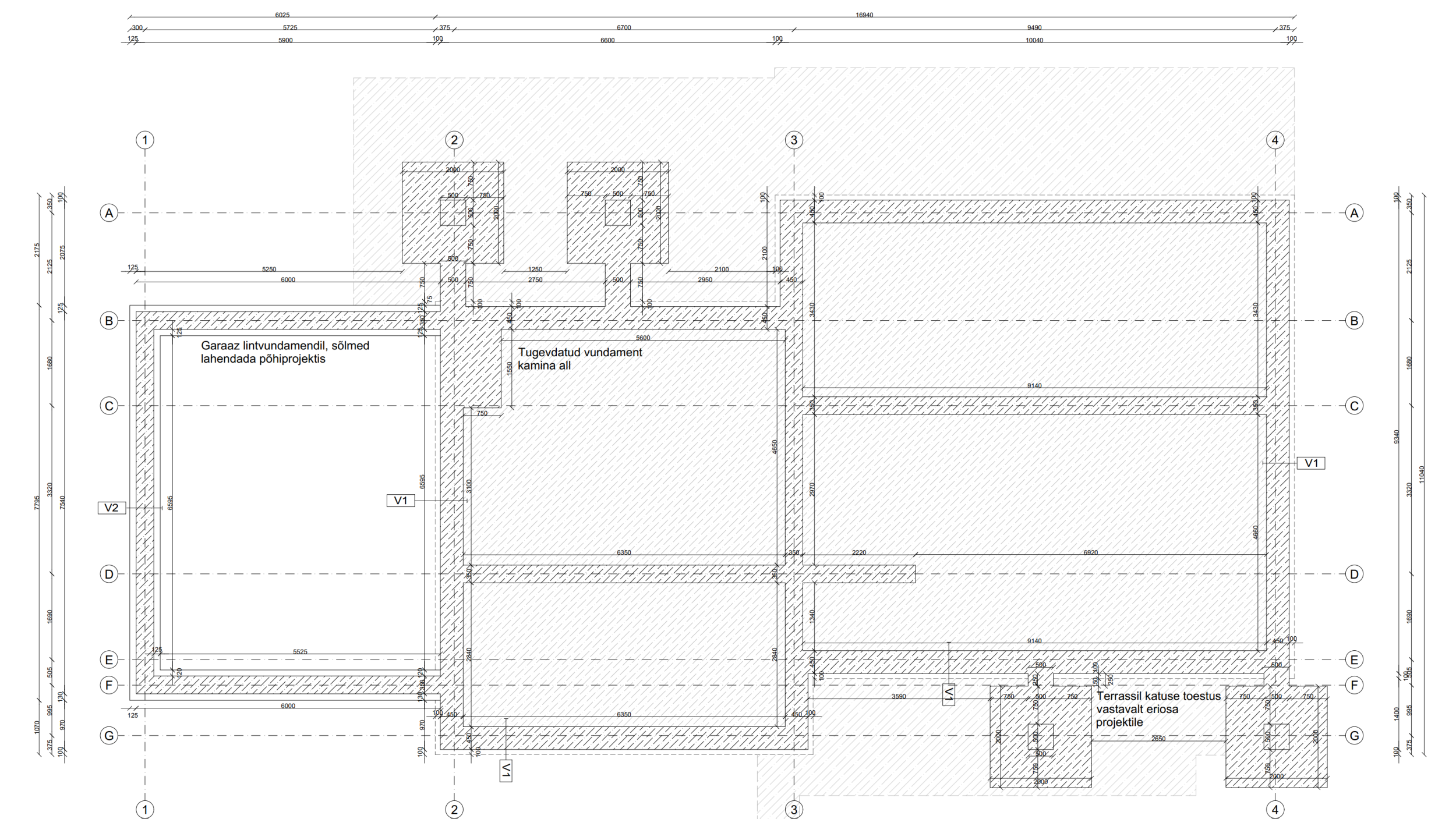 Vundamendi tüüp on plaat, garaazi osa eraldiseisevana lindi peal