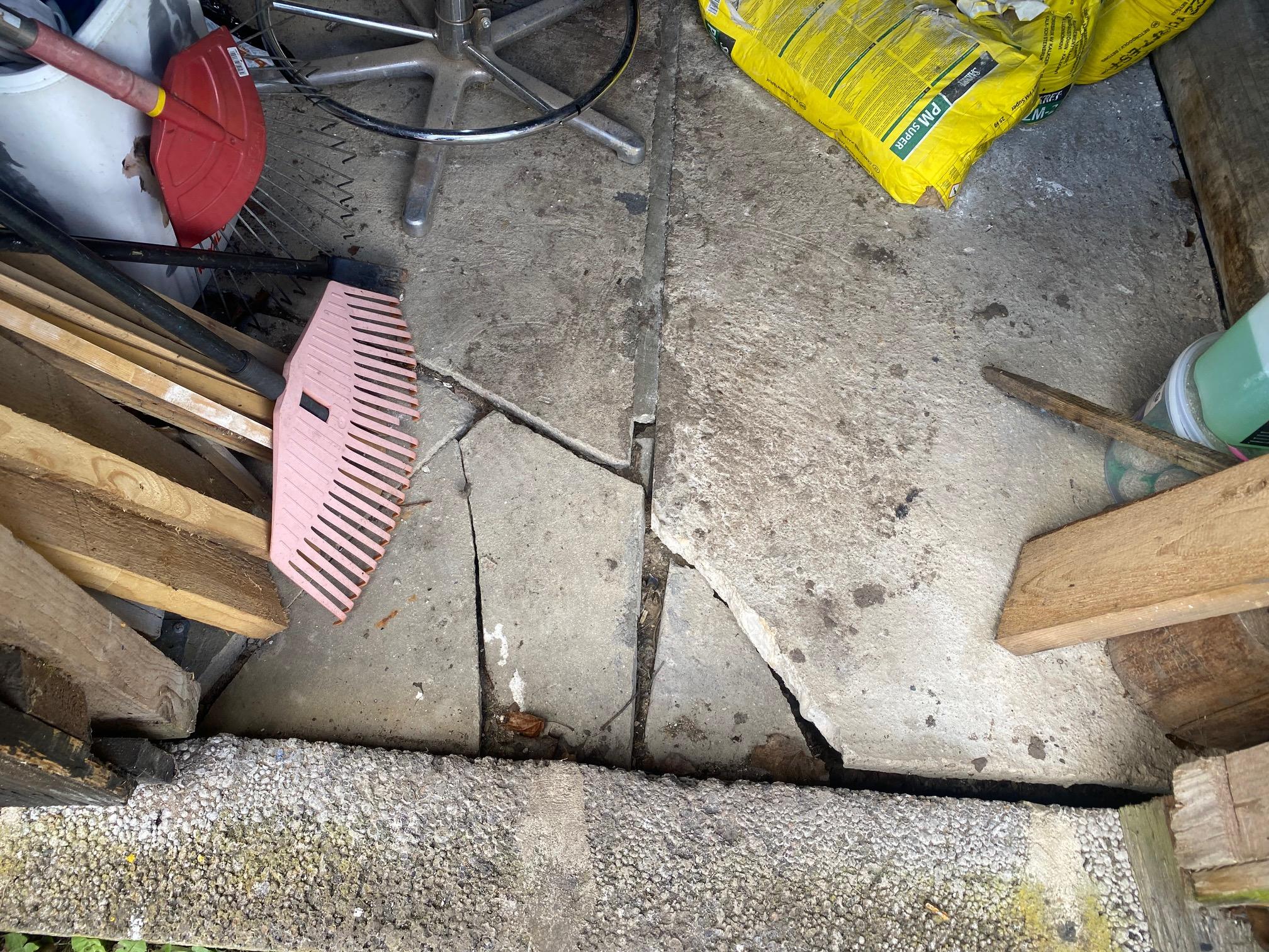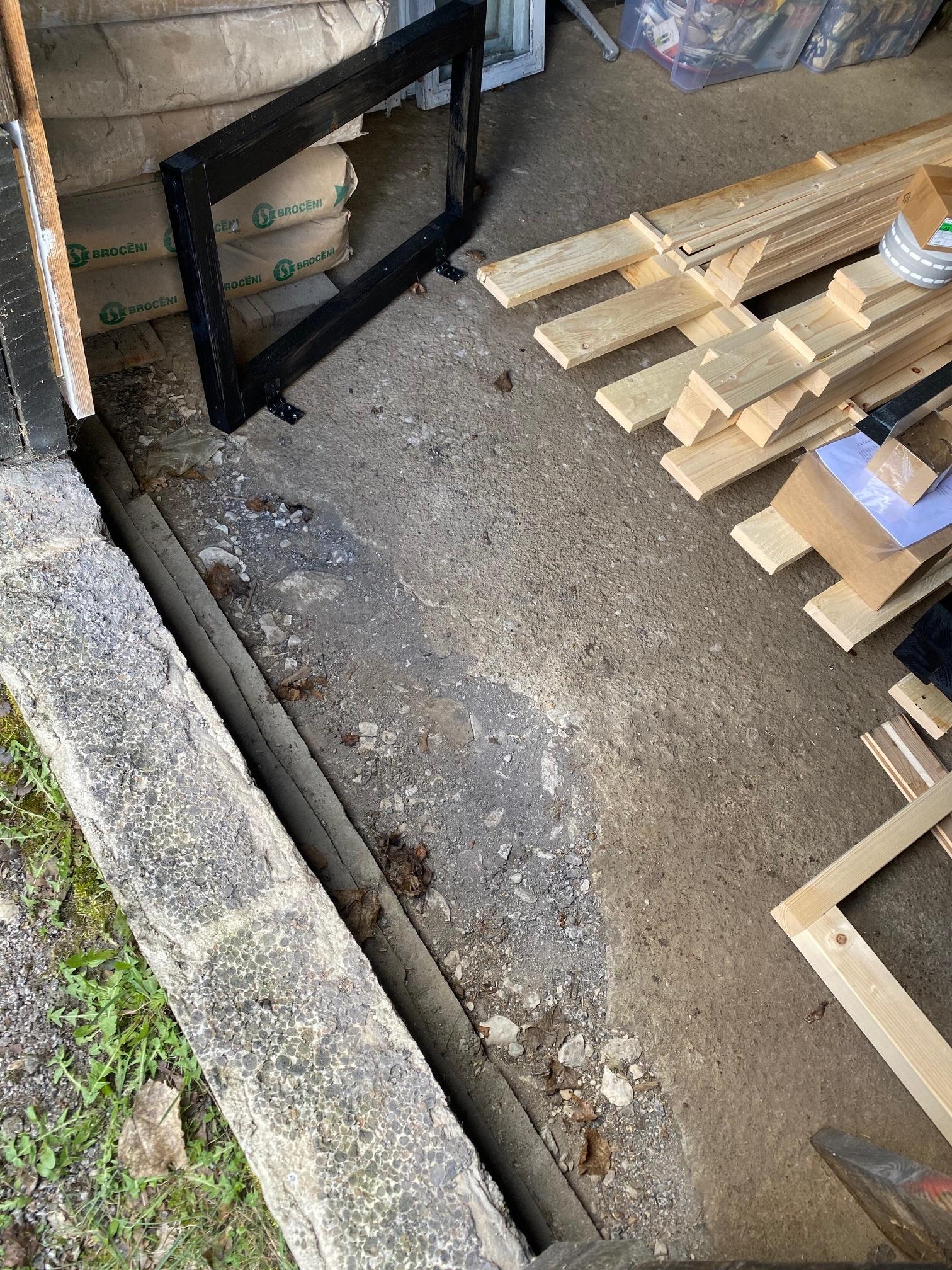 Ja majja sisse tuleks valada betoonpõrand. 2/3 majast on põrand juba valatud - servadest ja äärtest on see kahjustunud/murdunud või üleüldse puudu, 1/3 majast ei ole põrandat üldse valatud.