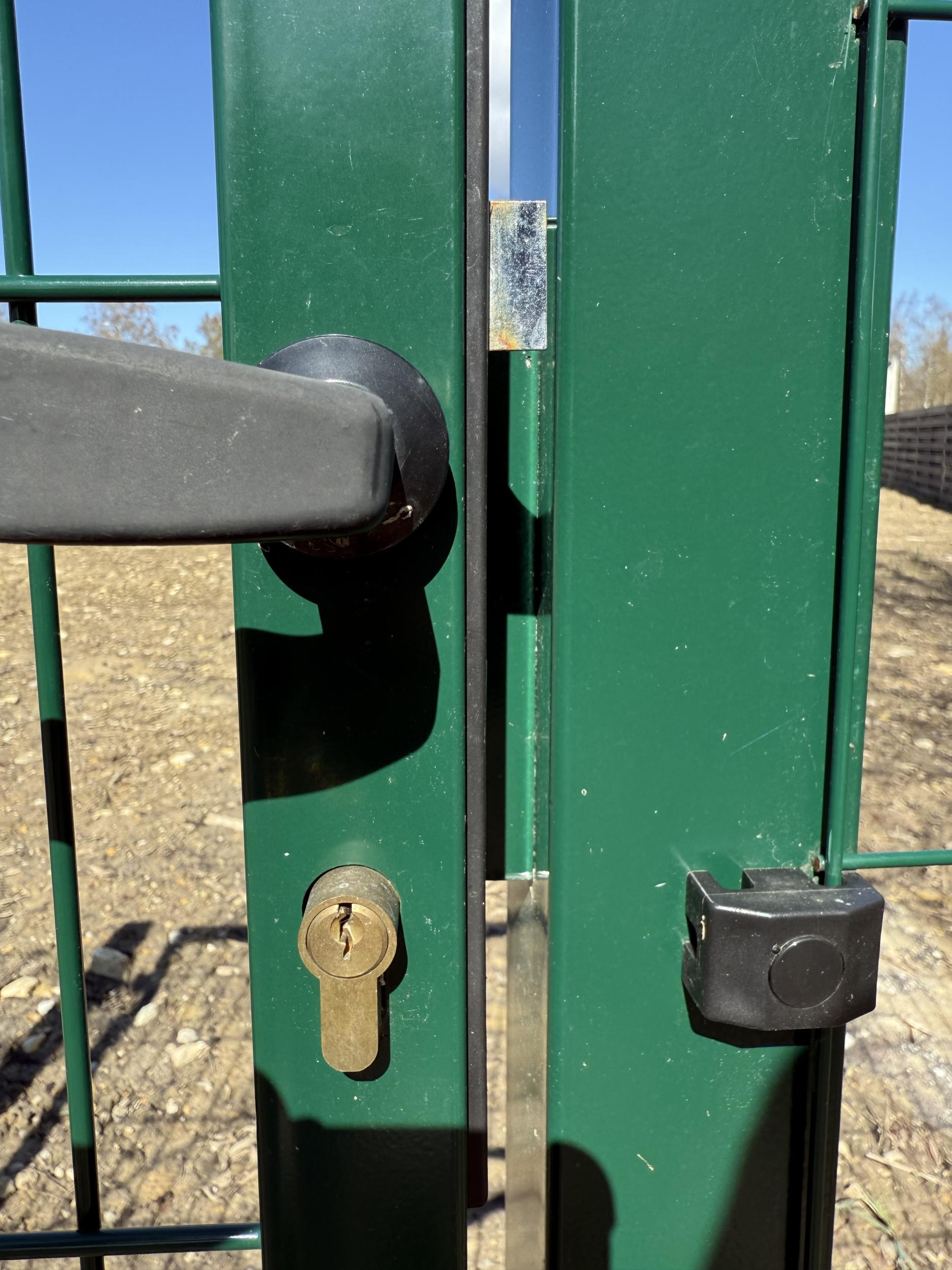 Krunti aeda on paigaldatud kaks ust: üks on sissepääs ja teine tagumine uks 3D aias. Mõlema värava võtmed on kaduma läinud, seetõttu on vaja lukuvahetust. Tagumist väravat 3D aias tuleb lisaks ka sirgendada, kuna see on pärast talve veidi üles nihkunud ega sulgu korralikult.