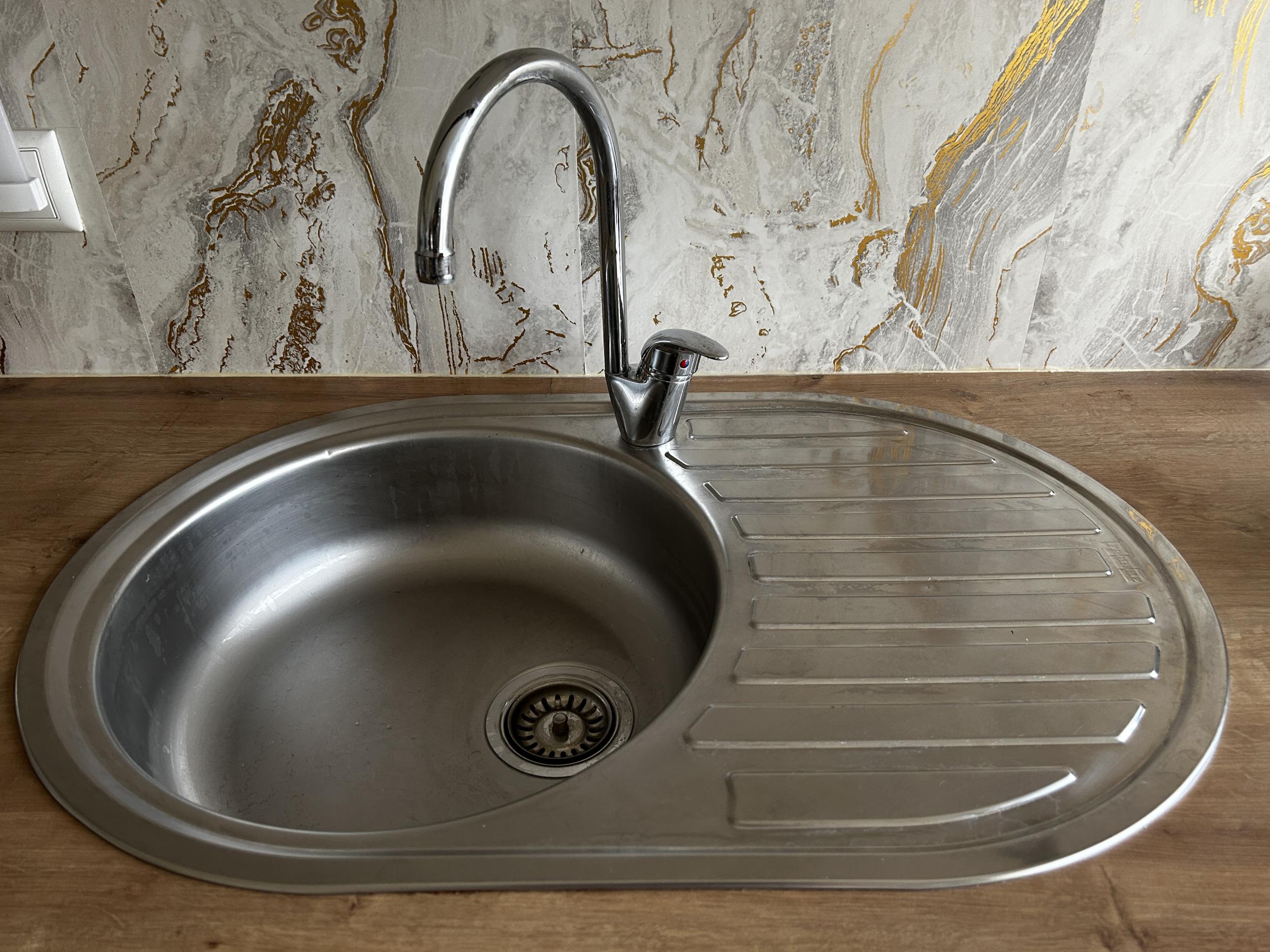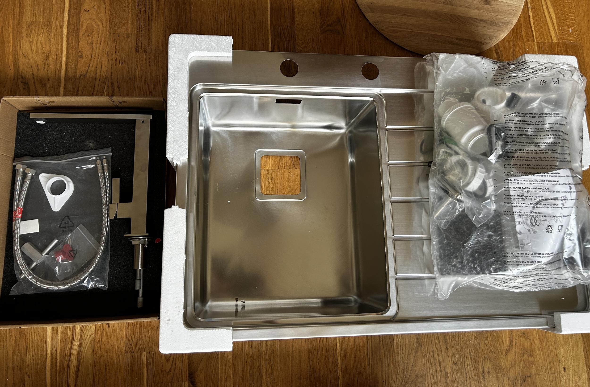 segisti ja pealtpaigaldatav roostevaba valamu sifooniga .