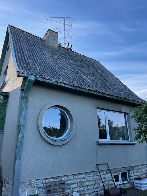 Vaja oleks vahetada ilmselt laudis, aga sarikad on tugevad ja korras. Vinskapi tahaks uuendada - suurem aken ja uus voodri laudis minimaalselt. Korstna pits v ülemine osa on vaja uuesti laduda. Katusepind 88m2.