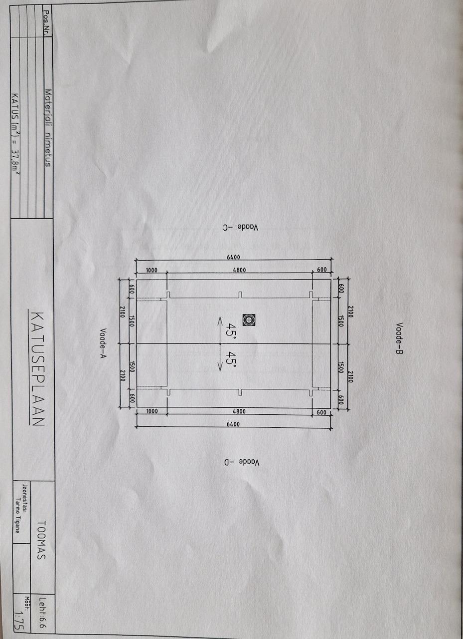 Soovin pakkumist eraldiseisva saunamaja katuse kattematerjali vahetamiseks. Katuse pindala kokku u. 38 m2 (lisatud katuse plaan).