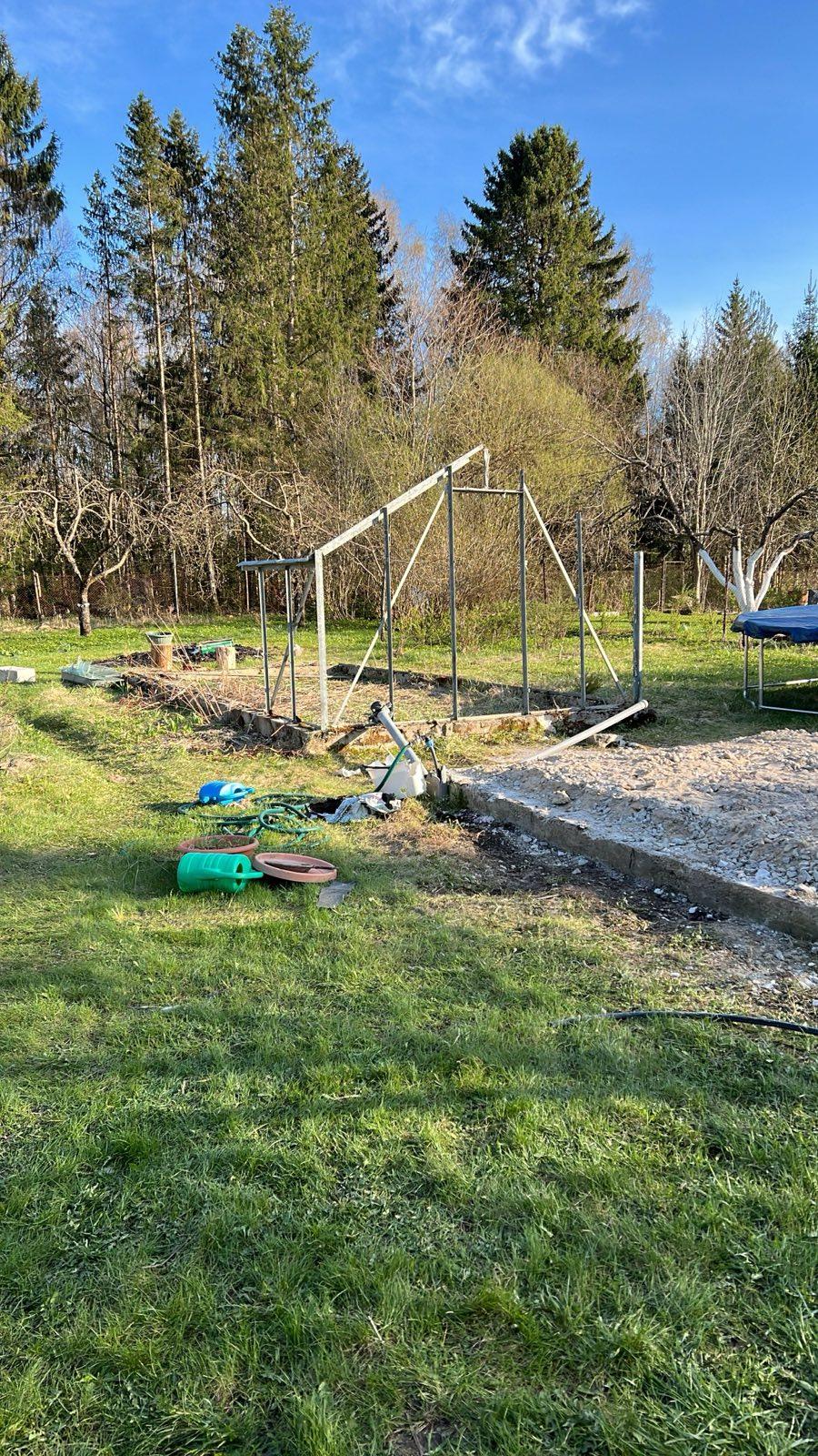 Soovin tellida projekti saunamajale. Maja tuleks pildil näidatud lammutatud kasvuhoone ja lammutatud sauna asemele. Lisatud pildil on asukoht näha.