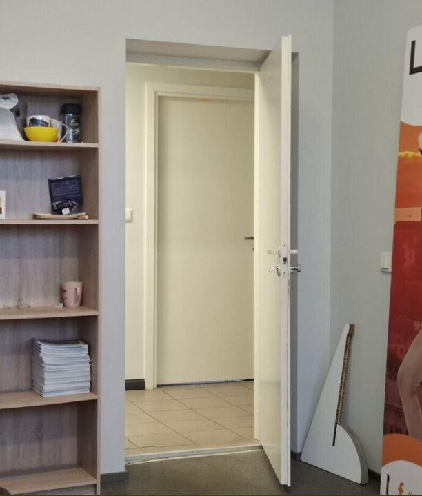 Vaja on vahetada kabineti uks. Asub esimesel korrusel. Olemasolev uks on pappist; paigaldada tuleb tulekindel puituks. Ukse hangime ja toome kohale ise. Vana ukse viime ise ära.