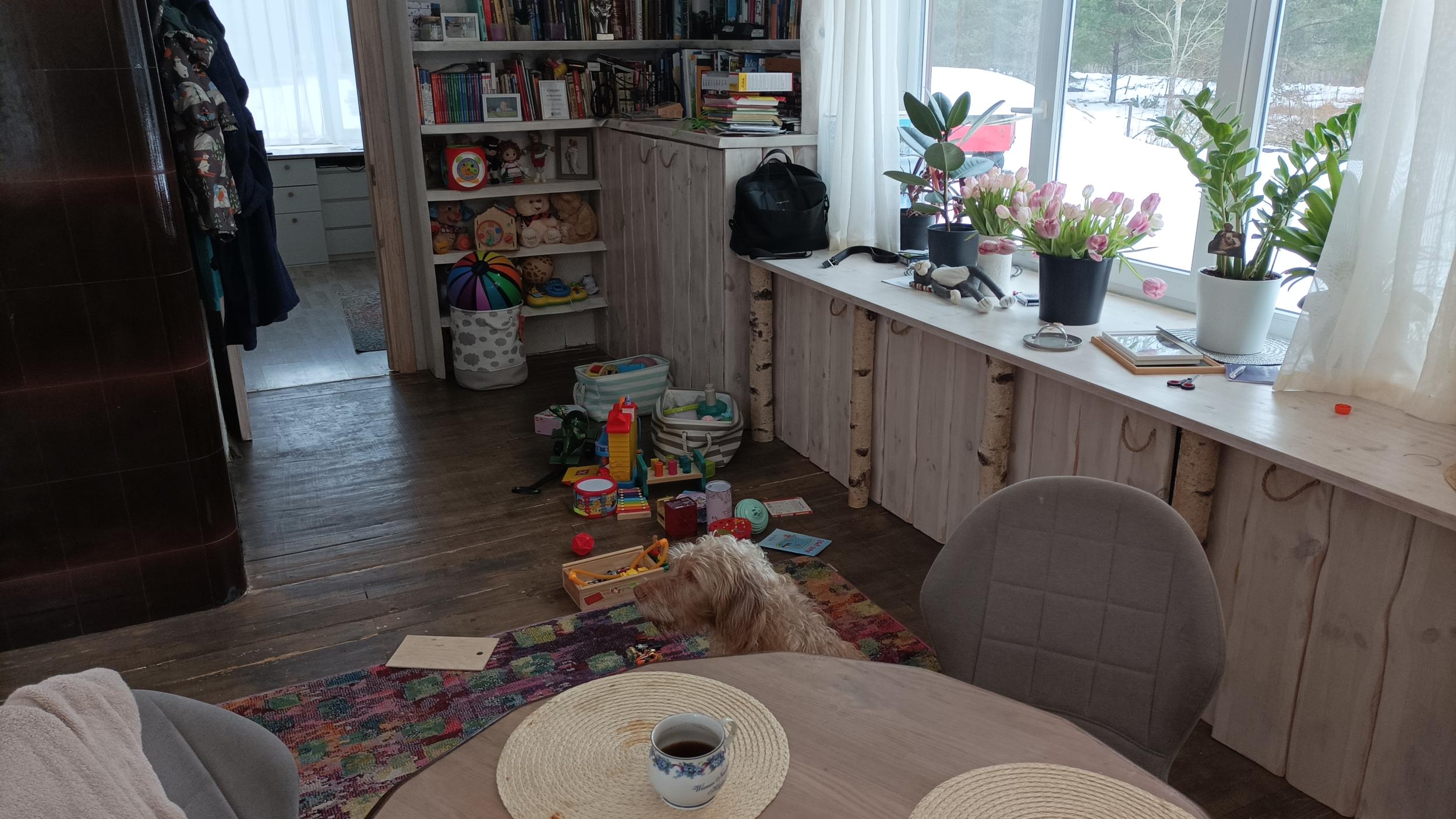 Puitkarkassile on peale pandud naturaalne laudparkett. Nii puitkarkass, kui ka vana laudparkett tuleb lammutada ja akna kaudu õue visata.