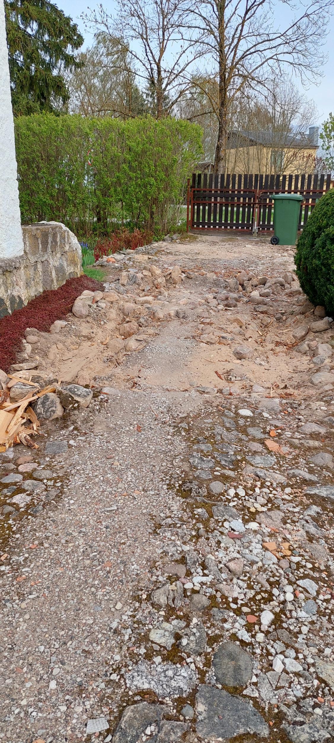 Maakividega sillutatud tee, mis sai osaliselt, u. 10 meetri ulatuses, tugevasti kannatada.